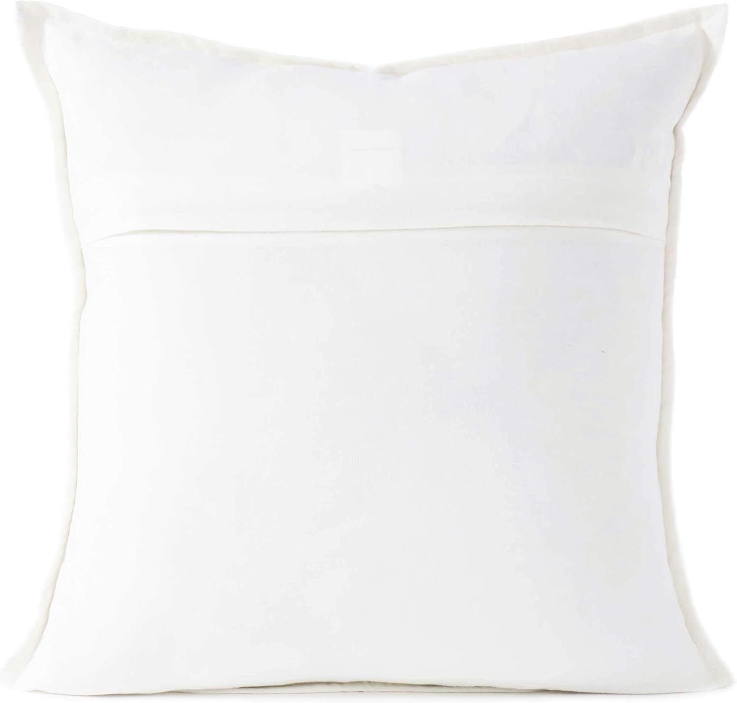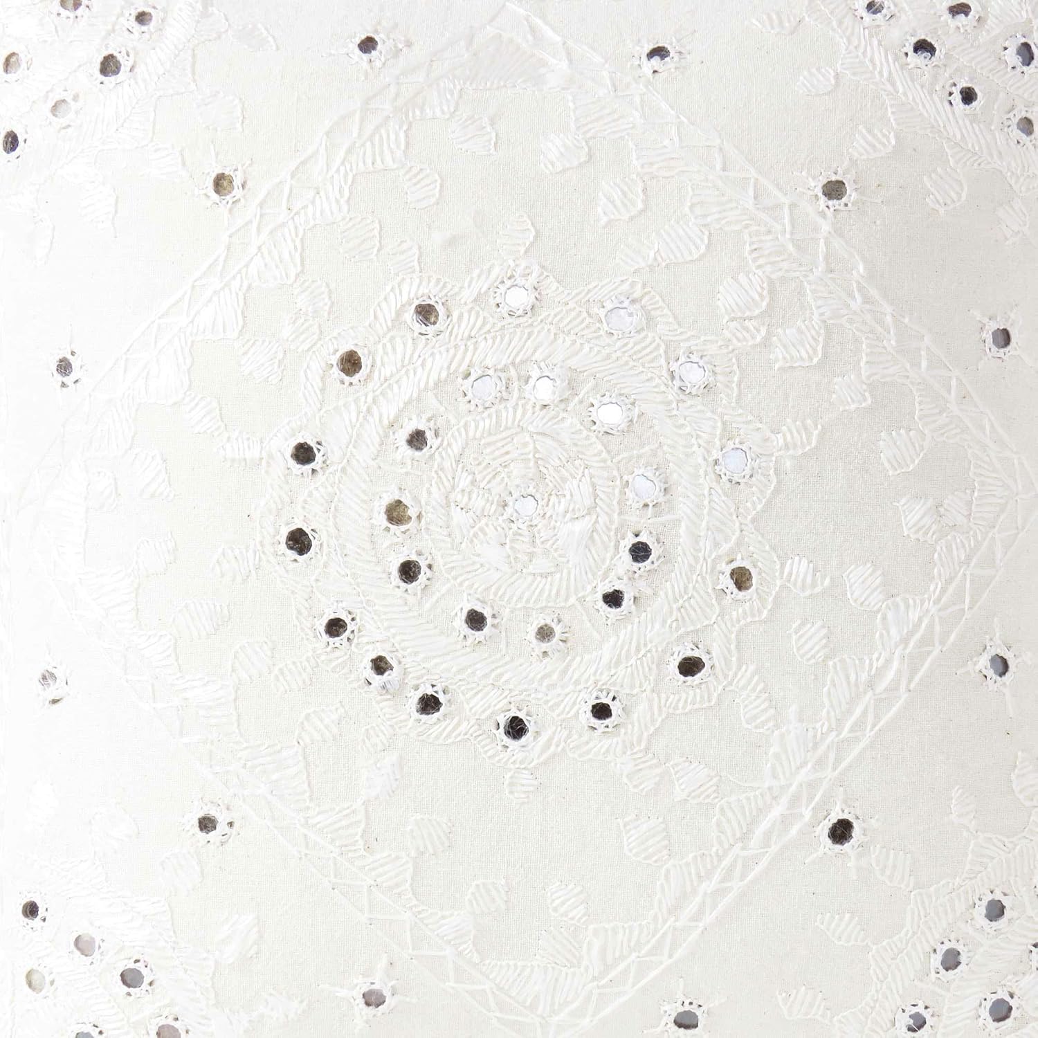 Eyes of India Embroidered Decorative Boho Throw Pillow Cover with Mirrors, Handmade Bohemian Accent Cushion Case for Sofa Couch Bedroom Living Room (White, 16" x 16")