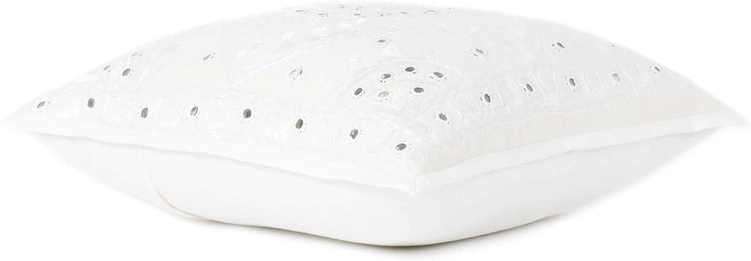 Eyes of India Embroidered Decorative Boho Throw Pillow Cover with Mirrors, Handmade Bohemian Accent Cushion Case for Sofa Couch Bedroom Living Room (White, 24" x 24")