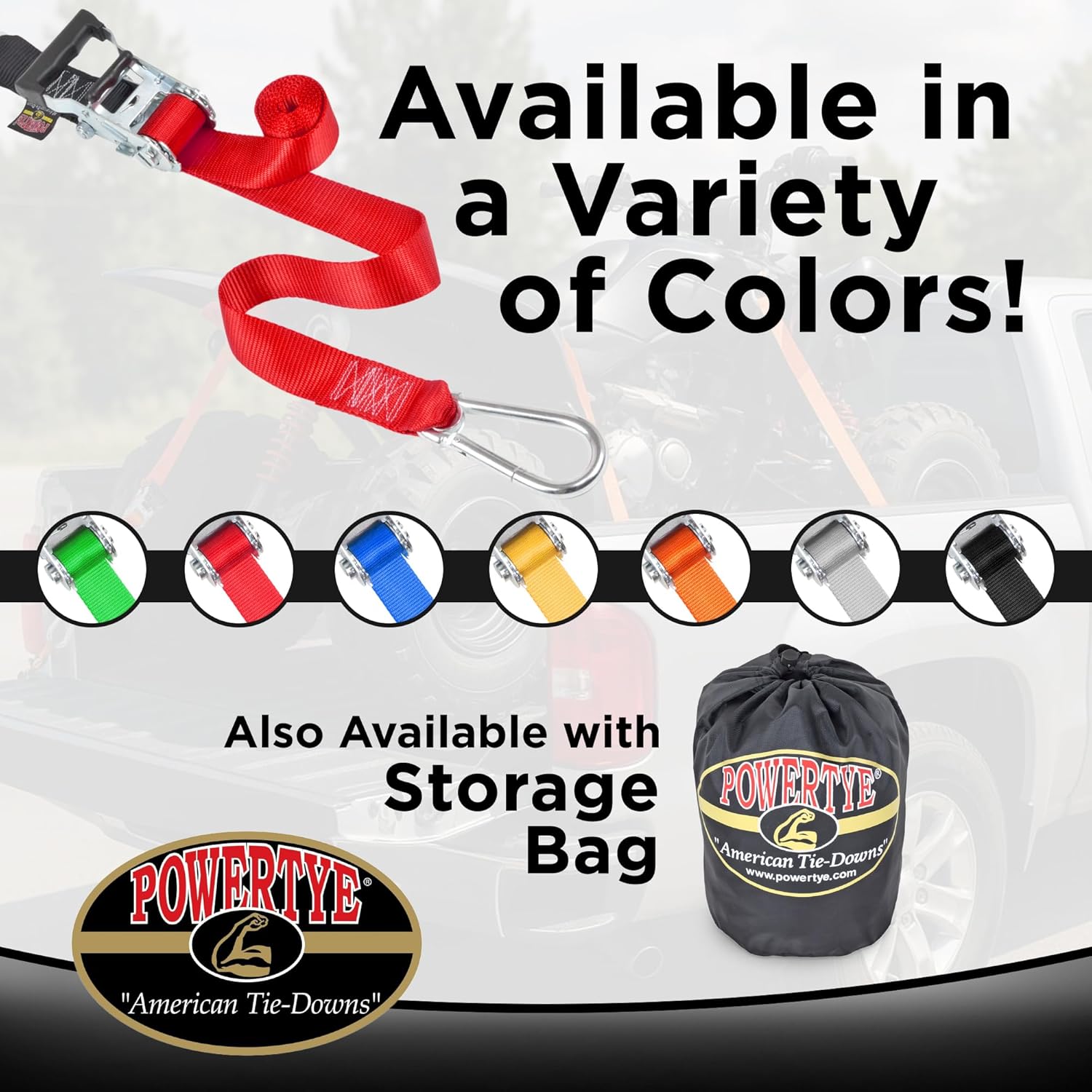 - TRUST POWERTYE MANUFACTURING, AN AMERICAN COMPANY: Tie-Down Straps are covered by our PowerTye Lifetime Warranty, giving you peace of mind when you’re travelling down the road.