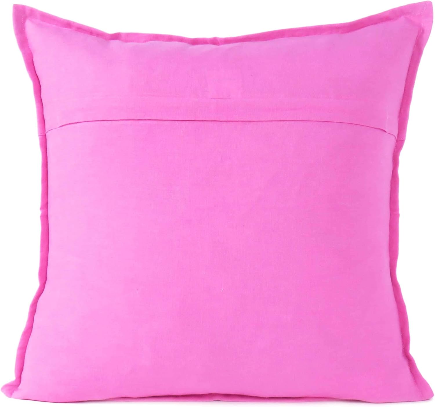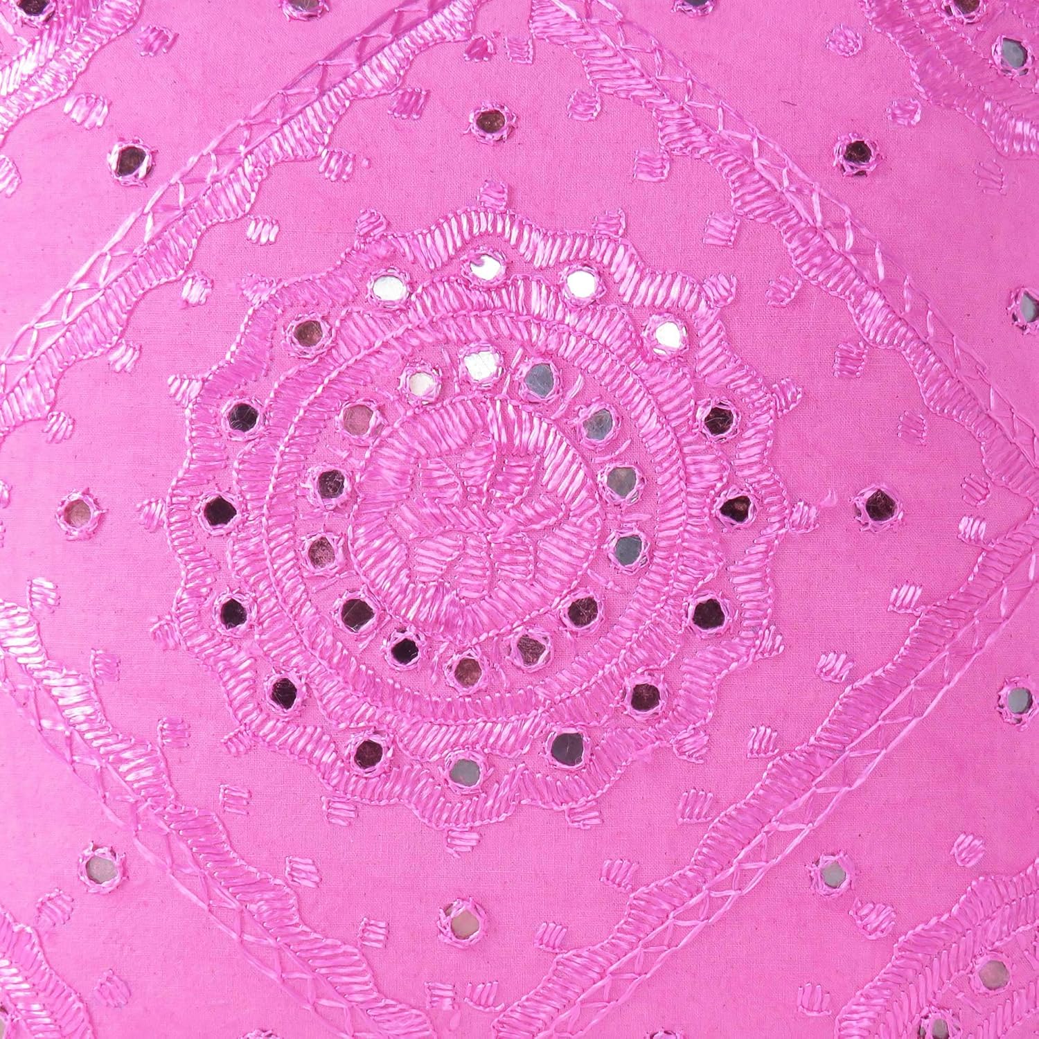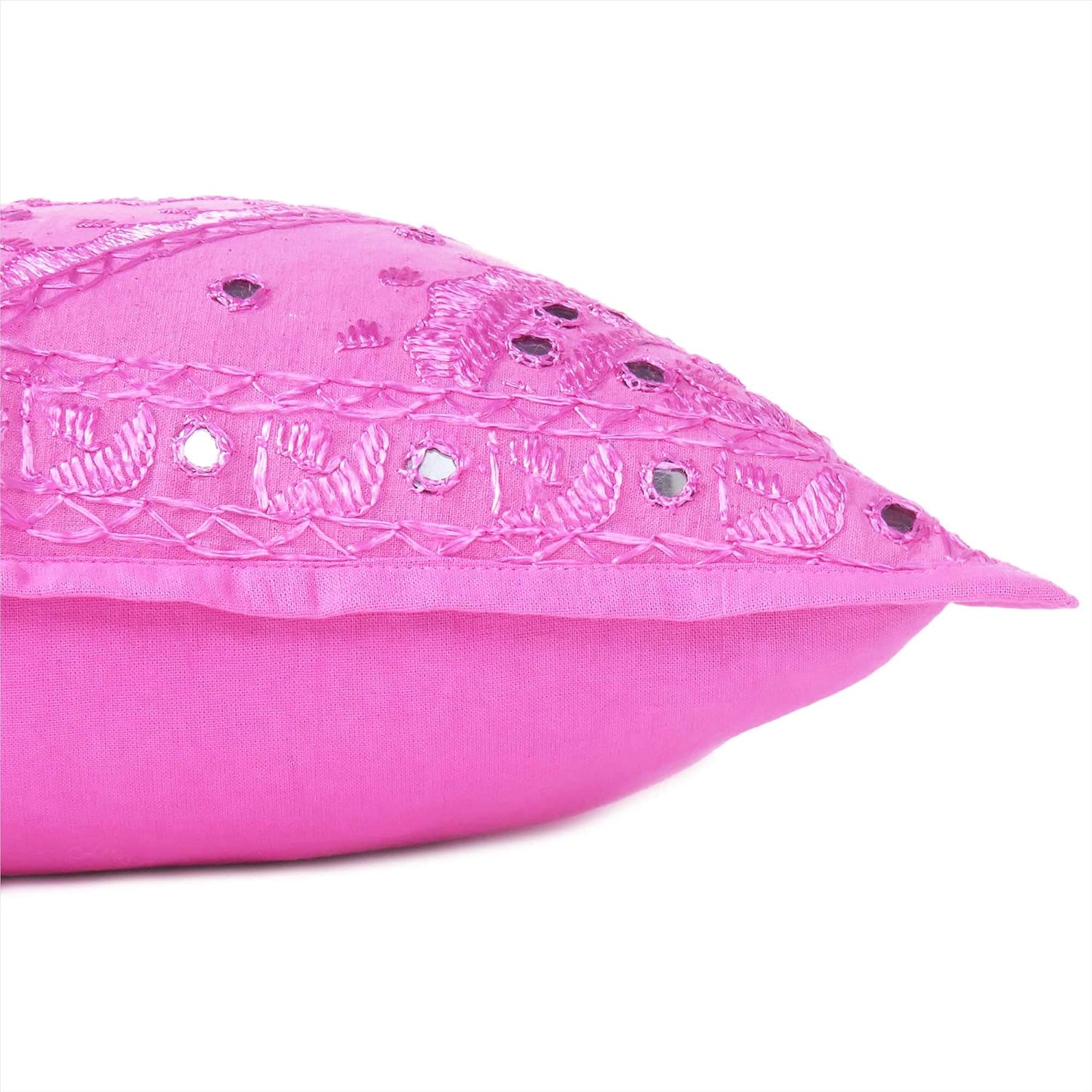 Eyes of India Embroidered Decorative Boho Throw Pillow Cover with Mirrors, Handmade Bohemian Accent Cushion Case for Sofa Couch Bedroom Living Room (Pink, 24" x 24")