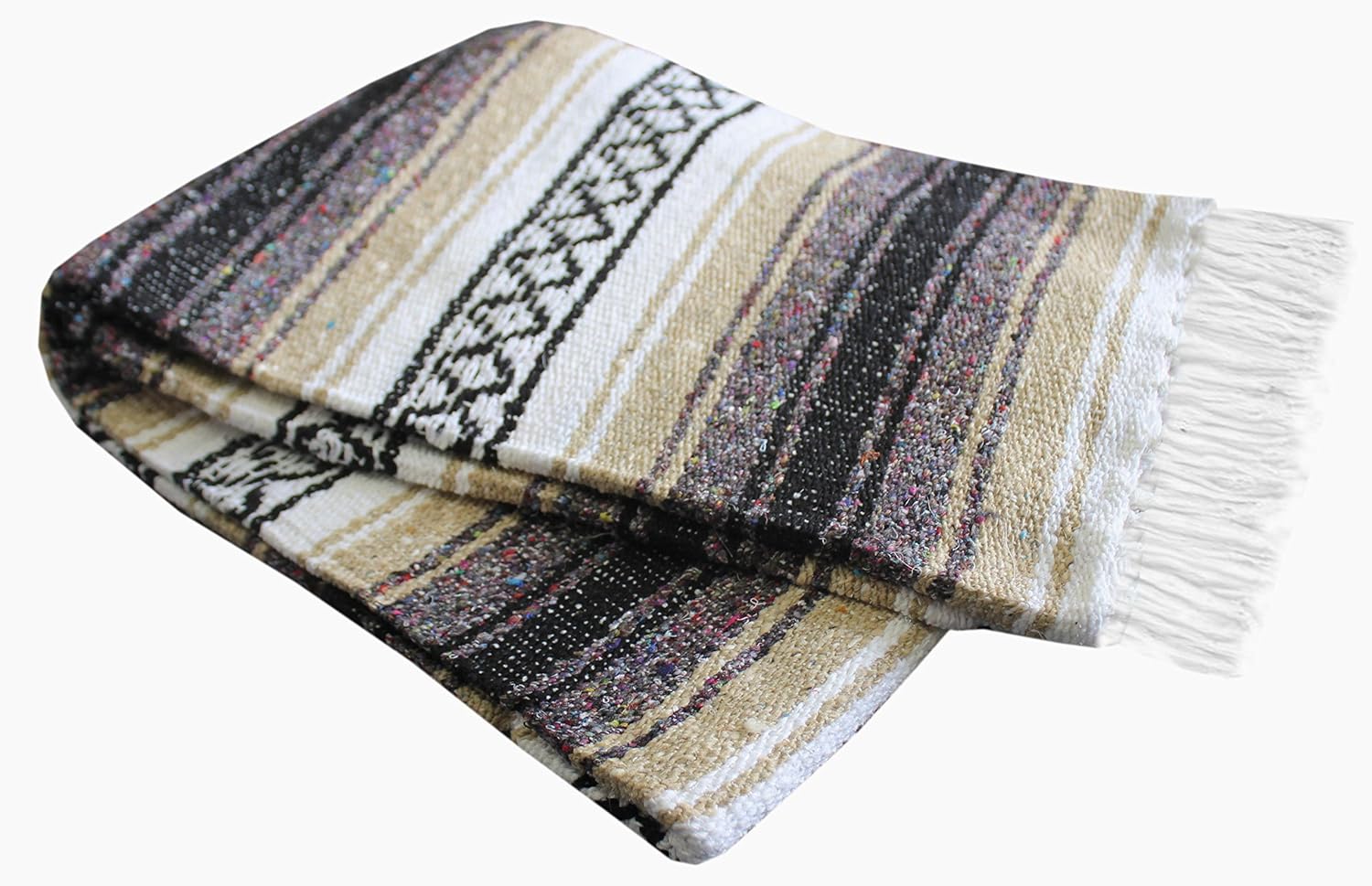 - QUALITY: Del Mex falsa blankets are thick and made to last. They are crafted from a soft blend of cotton & recycled acrylic and boast a higher cotton content than cheap knock-offs. Additionally, the edges are folded instead of sewn for added strength & style. Dimensions: 75" x 50" with additional 3" fringe on each end.