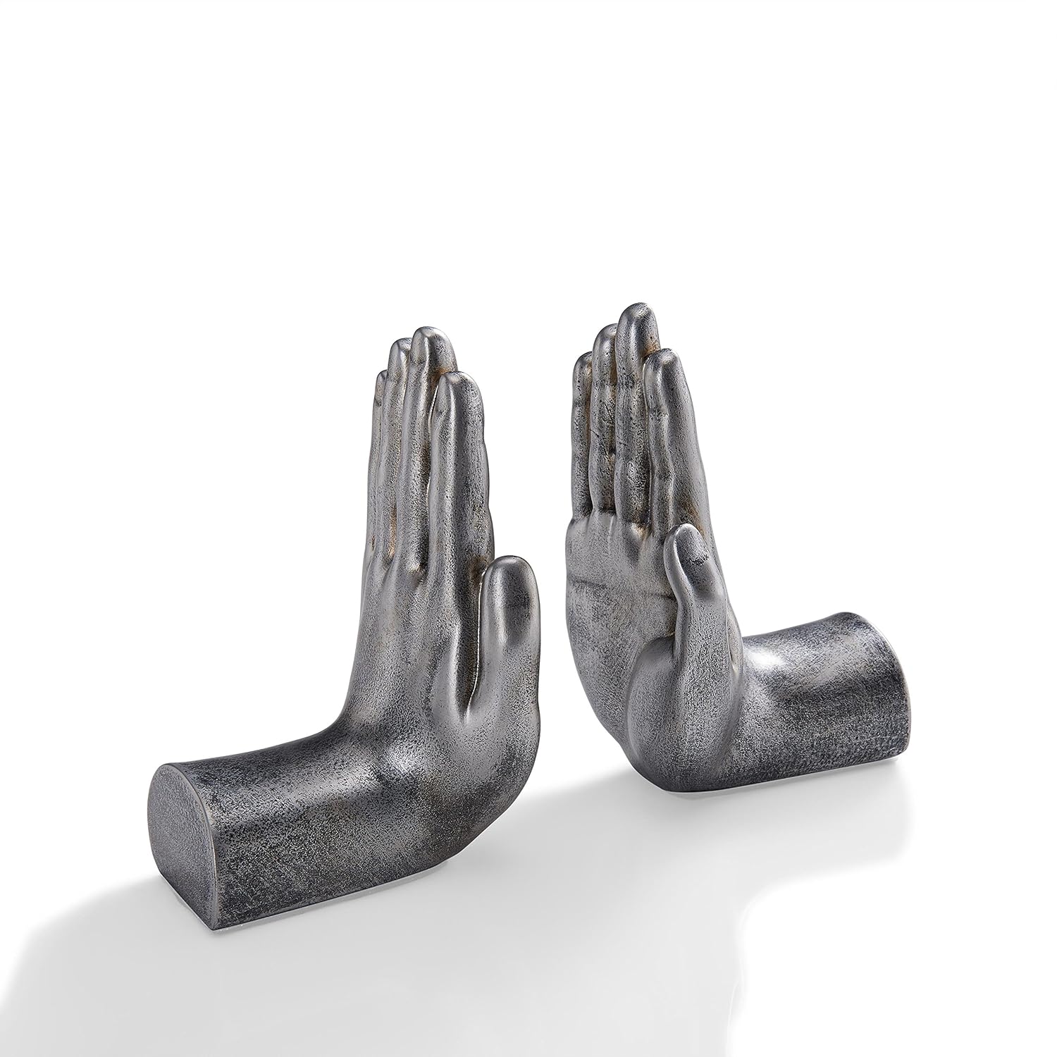 Danya B. Contemporary Accent Book Shelf Decor - Hands Sculpture Bookend Set of 2 (Silver)