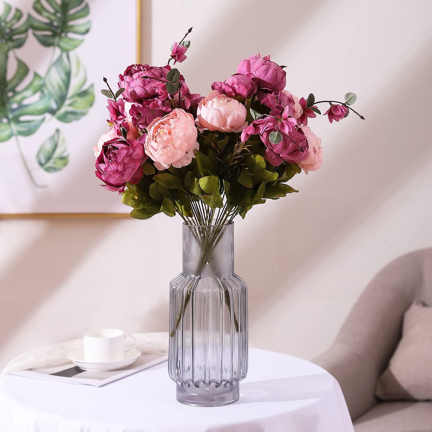 - INCLUDING: Each bouquet have 13 stems,with 6 flowers and 2 buds,flower diameter approx 3.5''H x 2''W,total length approx 20.87'' . The artificial peony flower features a full bloom and vibrant colors, creating a realistic look.