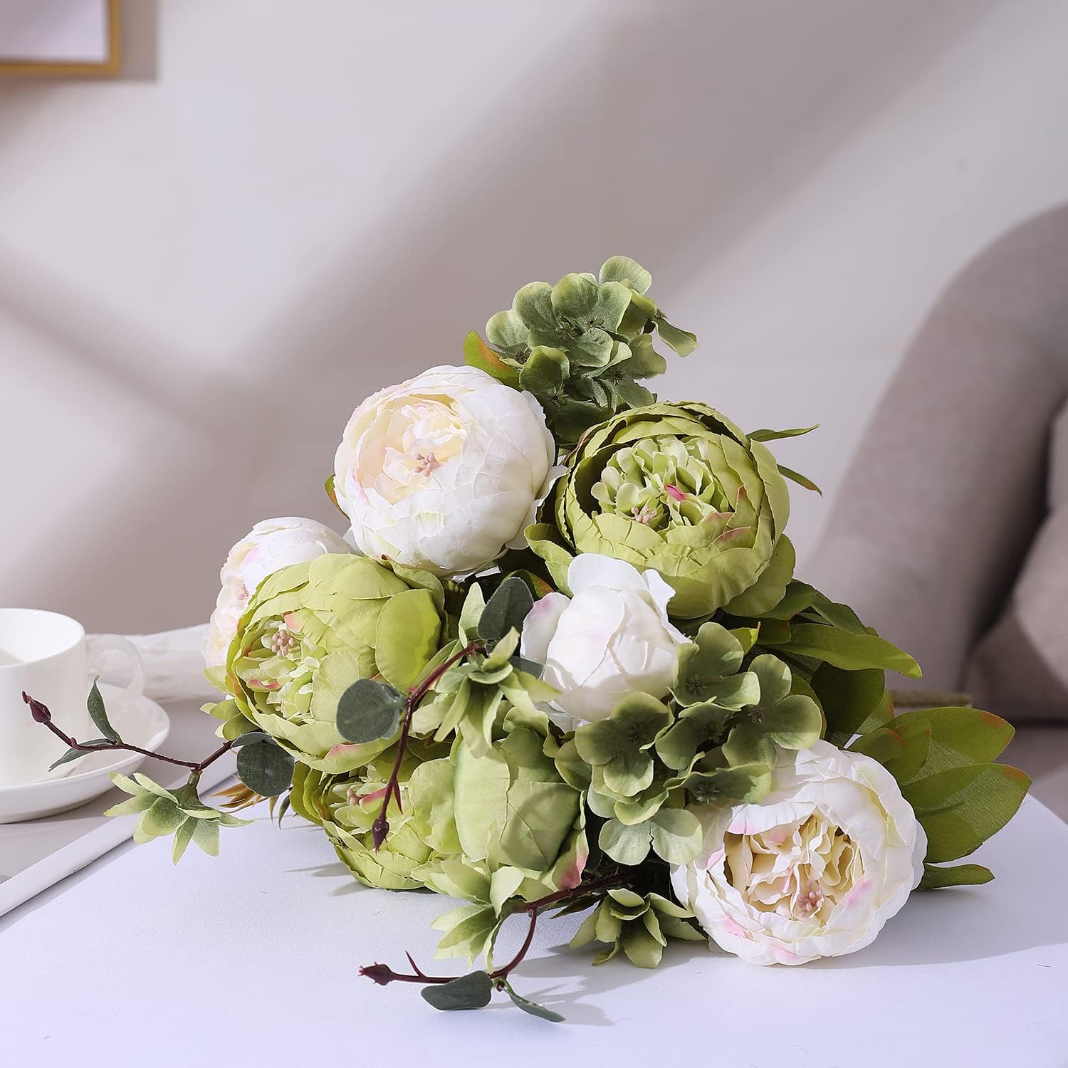 Duovlo Fake Flowers Vintage Artificial Peony Silk Flowers Wedding Home Decoration,Pack of 1 (New Green)