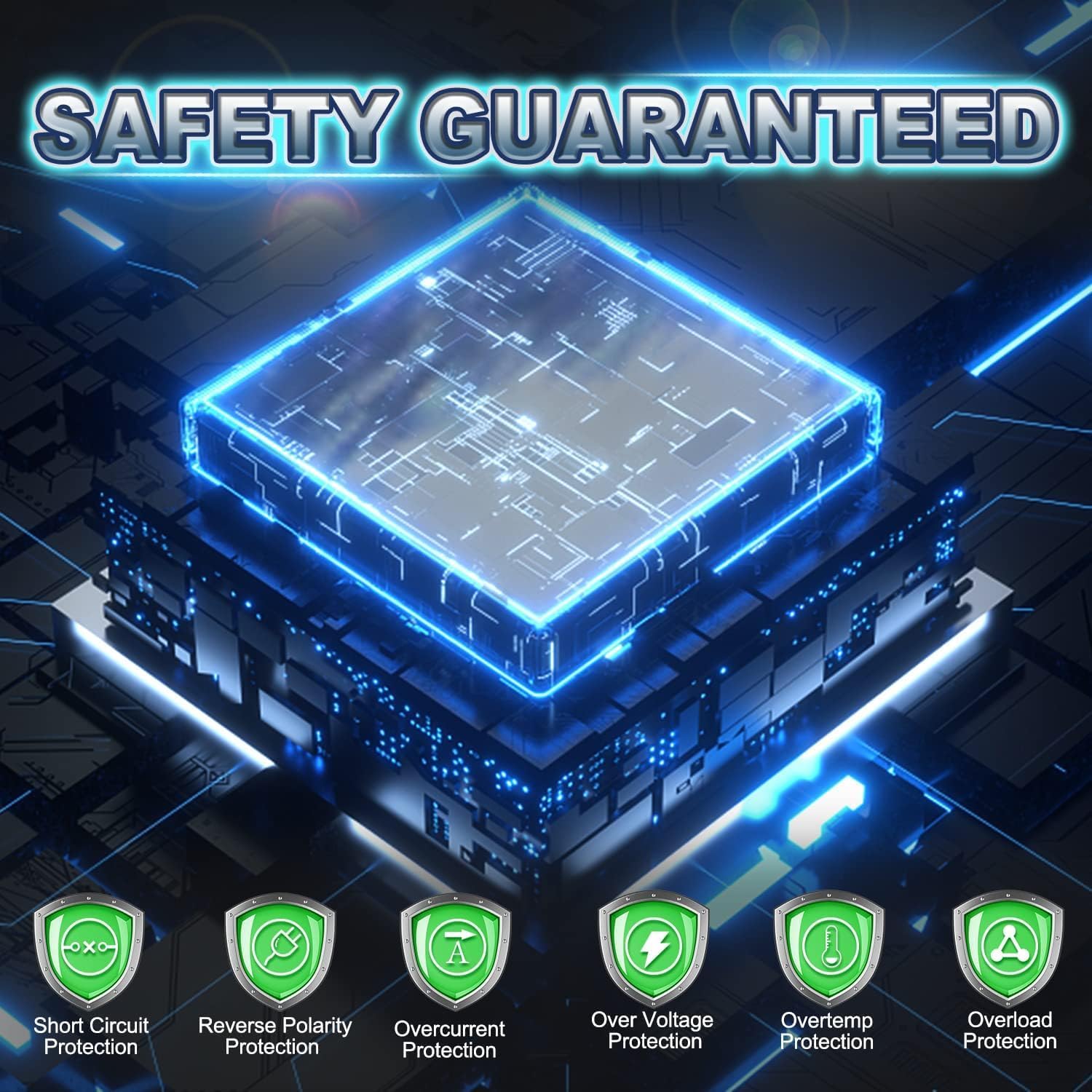 - MULTI-PROTECTION: 6 kinds of protection to against: Overload / Short Circuit / Over heat / Reverse Polarity / Under or Over Voltage protections. Make your batteries and appliances safer. And we have 12-Months Warranty.
