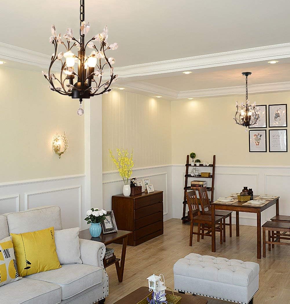 - ARTIST DESIGN: Black crystal chandelier use 5 branches with crystals design to increase the line sense of fixture, beautiful shape and strong artistic design give you a unique choice,use transparent glass crystals to capture and reflect the light of the bulb. Black, Gold two colors for optional, sparking and stunning crystal to created a warm and soft atmosphere.
