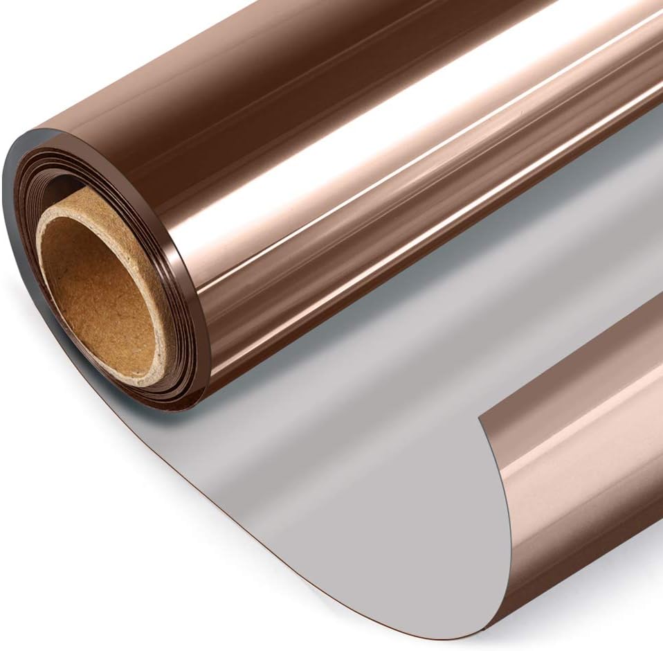 HIDBEA One Way Mirror Window Film, Daytime Privacy Sun Blocking Reflective Window Film Static Cling Heat Control Window Tinting Film for Home and Office, Brown Silver, 35.4 x 393.7 Inch
