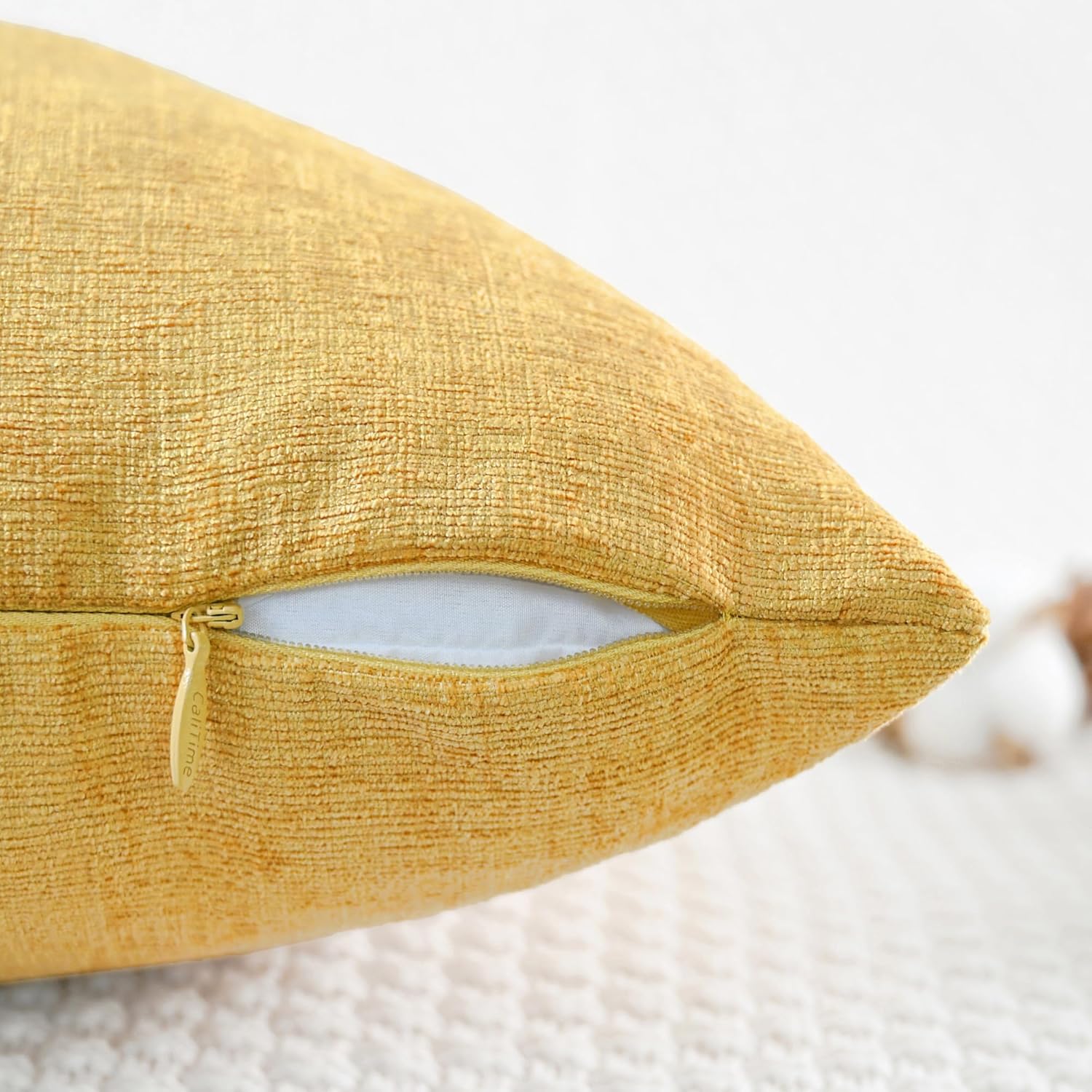 CaliTime Throw Pillow Covers Decorative 12 X 20 Inches Pack of 2 Cozy Chenille Cushion Cases for Couch Sofa Bed Living Room Home Gold