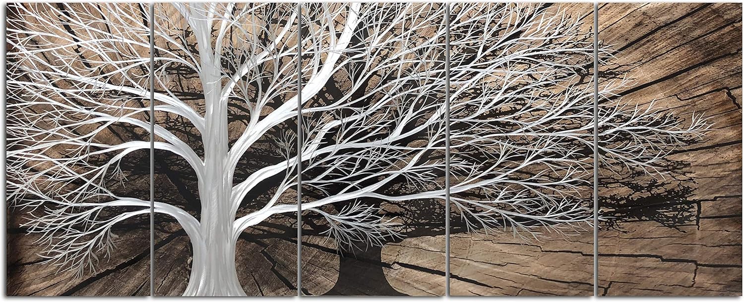 Yihui Arts Tree of Life Metal Wall Art Set - Handcrafted 3D Aluminum Sculpture, Silver Couples Artwork for Home Decor - Perfect Living Room, Bedroom, or Office Accent