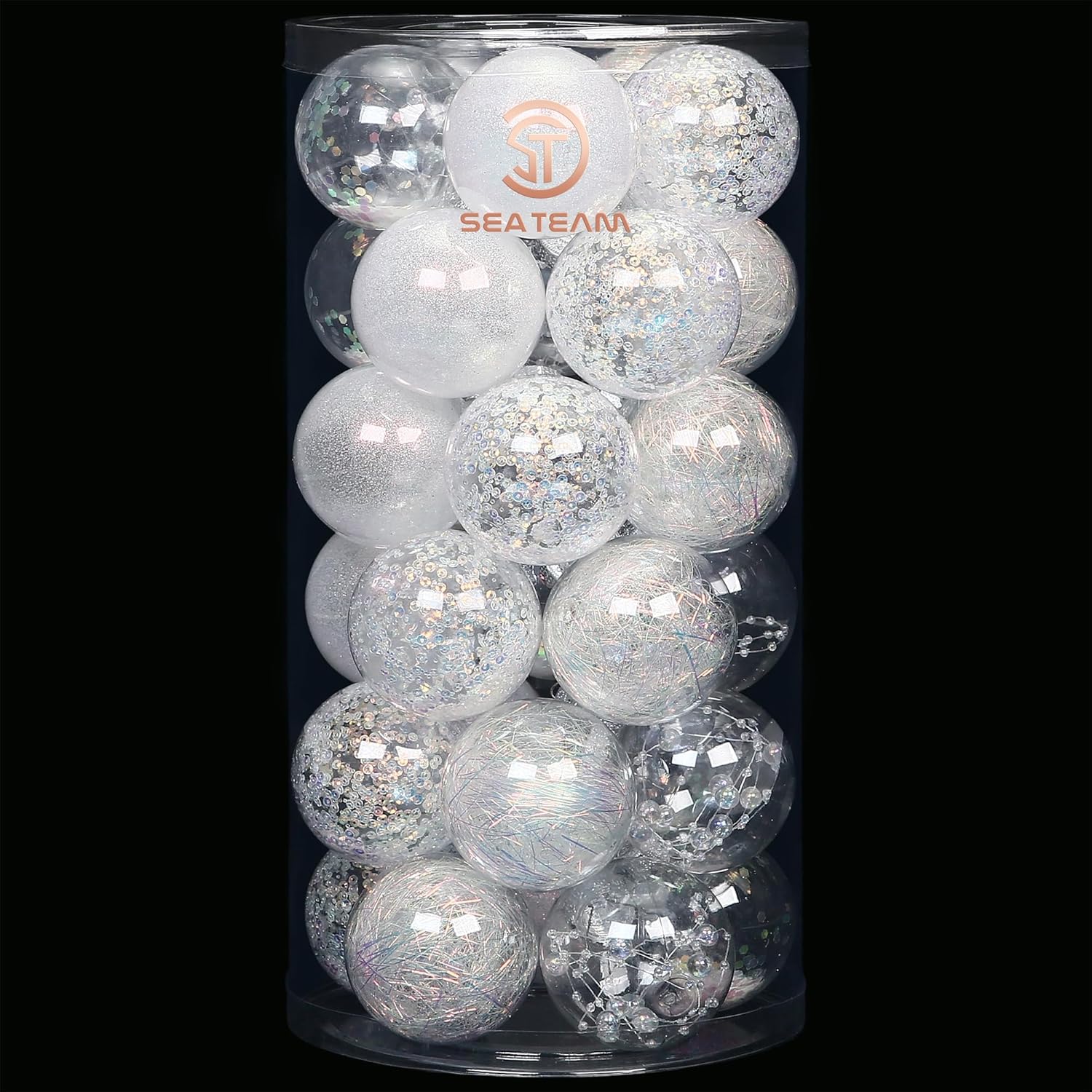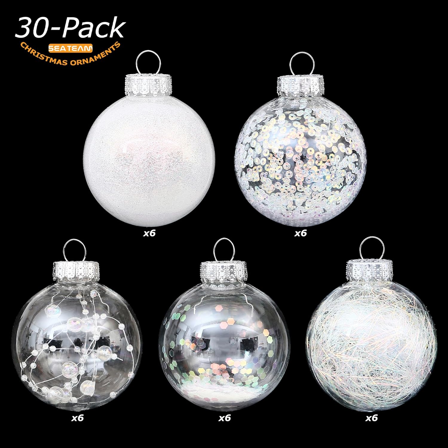 Sea Team Shatterproof Clear Plastic Christmas Ball Ornaments Decorative Xmas Balls Baubles Set with Stuffed Delicate Decorations (60mm/2.36 inch 30-Pack, Iridescent)
