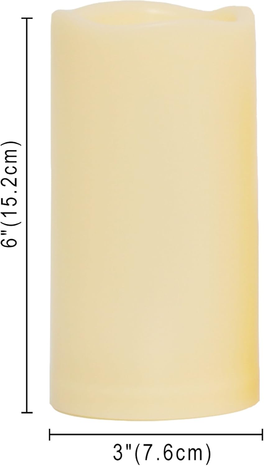 CANDLE CHOICE Waterproof Outdoor Battery Operated Flameless Candles with Timer Realistic Flickering Plastic Fake Electric LED Pillar Lights for Lantern Wedding Christmas Decorations 3x6 Inches 2 Pack