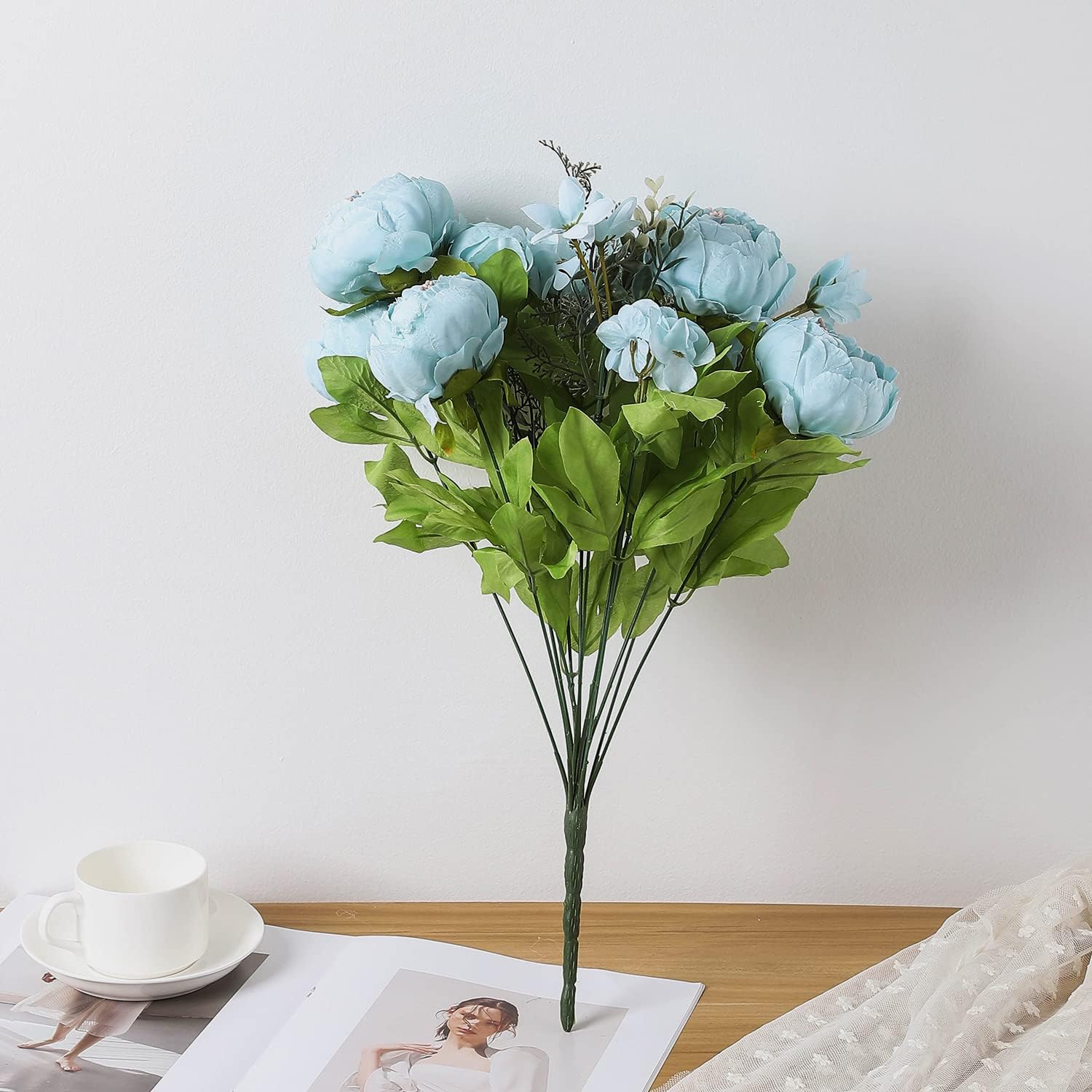 Duovlo Artificial Peony Silk Flowers Fake Flowers Vintage Wedding Home Decoration,Pack of 1 (Spring Blue)