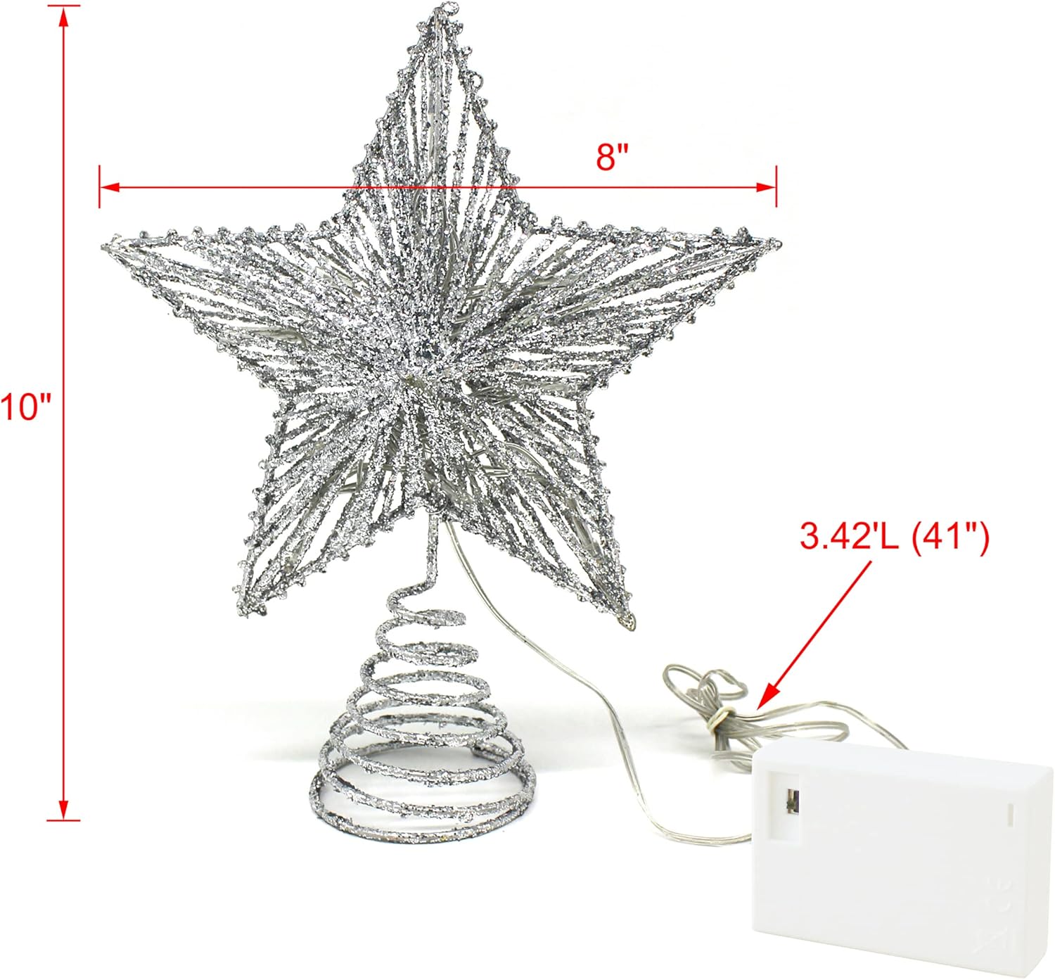 - Measures is 8" X 2-3/4" X 10"H, the wire is 3.42'L (41"), 3D star, solid batteries box with flexible switch, New Upgrades design