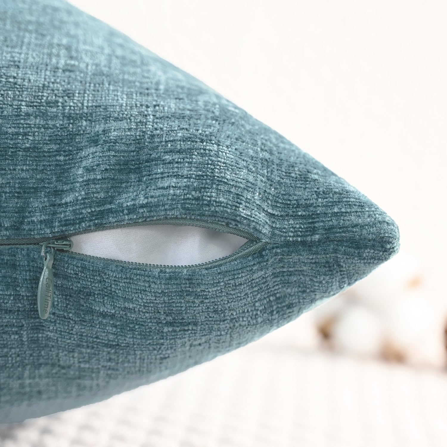 CaliTime Throw Pillow Covers Decorative 22 X 22 Inches Pack of 2 Cozy Chenille Cushion Cases for Couch Sofa Bed Living Room Home Smoke Blue