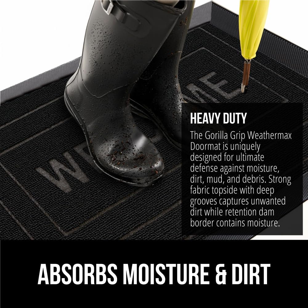 - THE ORIGINAL WEATHERMAX ALL SEASON DOORMAT: Gorilla Grip's Original WeatherMax doormat is built tough with a heavy duty, yet soft and flexible construction; deep grooves, beveled rubber border and retention dam help capture dirt, debris and moisture