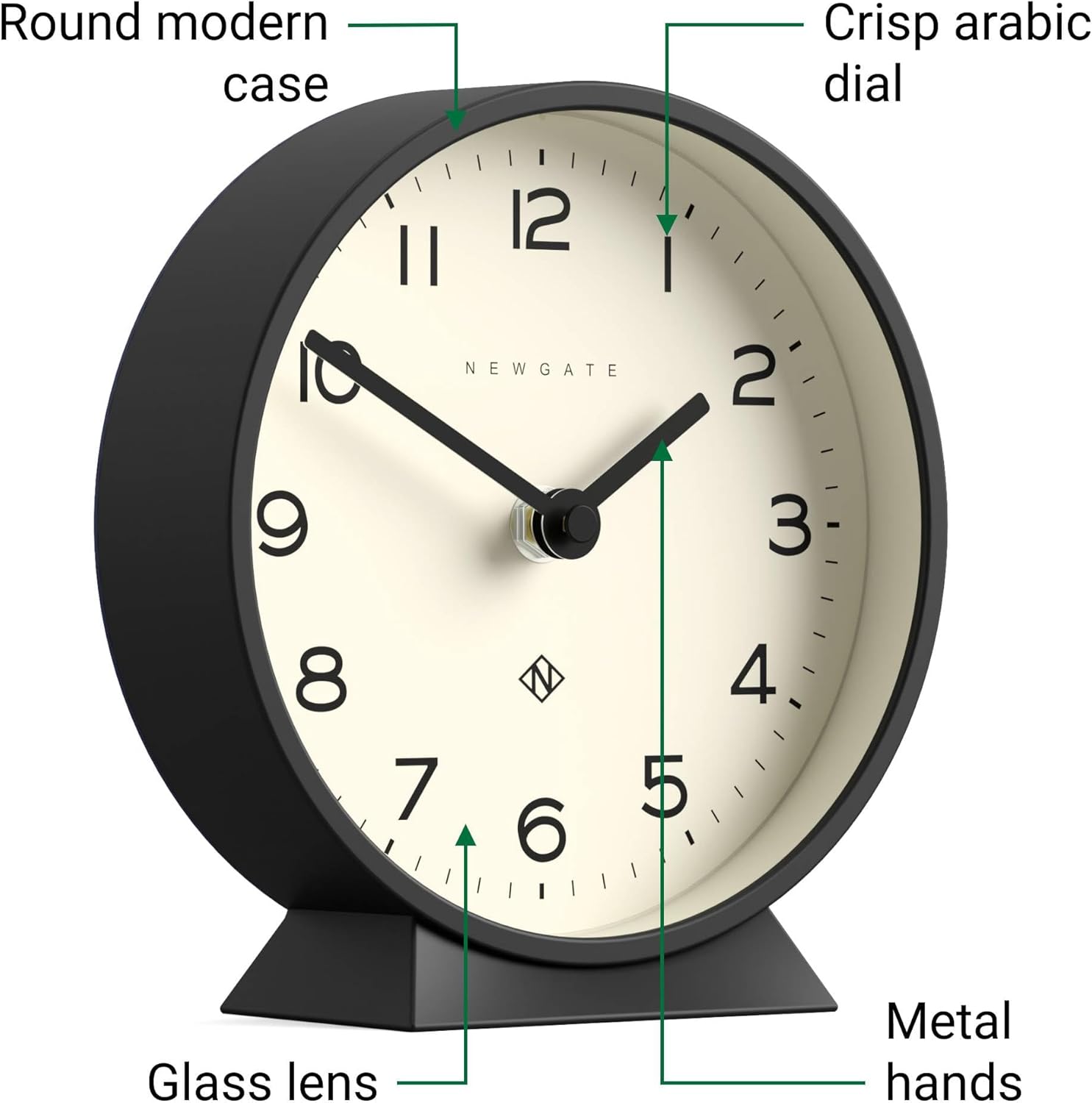 - Modern contemporary round desk clock with its clean, sculptural form and understated elegance, this Newgate clock offers a masterclass in minimalist design.