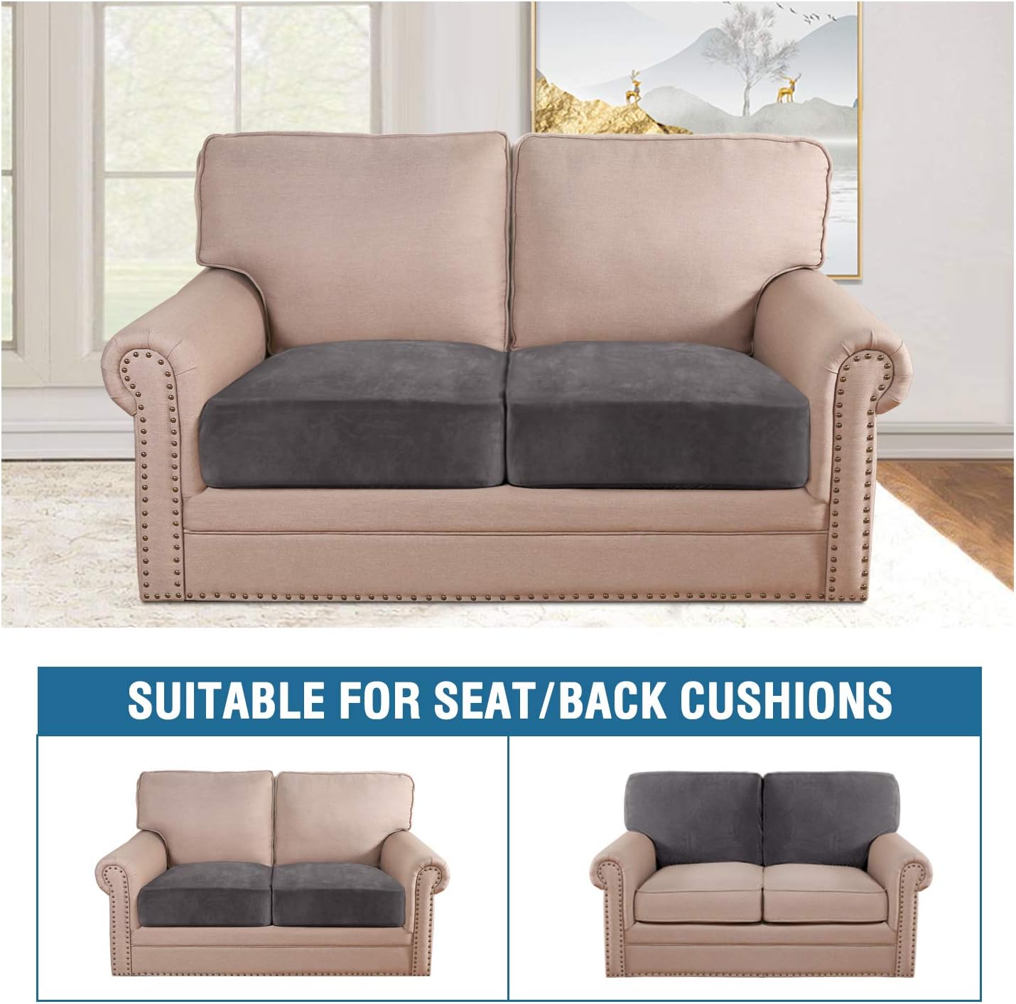 - STAY IN PLACE: Featuring non-skid thick elastic bottom, our cushion slipcover can stay tight with no snag, no wrinkling, shifting or slipping on both leather and cloth sofa. Check the installation guide carefully, it can be finished within 3 minutes by one person. It is very easy to put on and take down. (Installation Instructions Included)