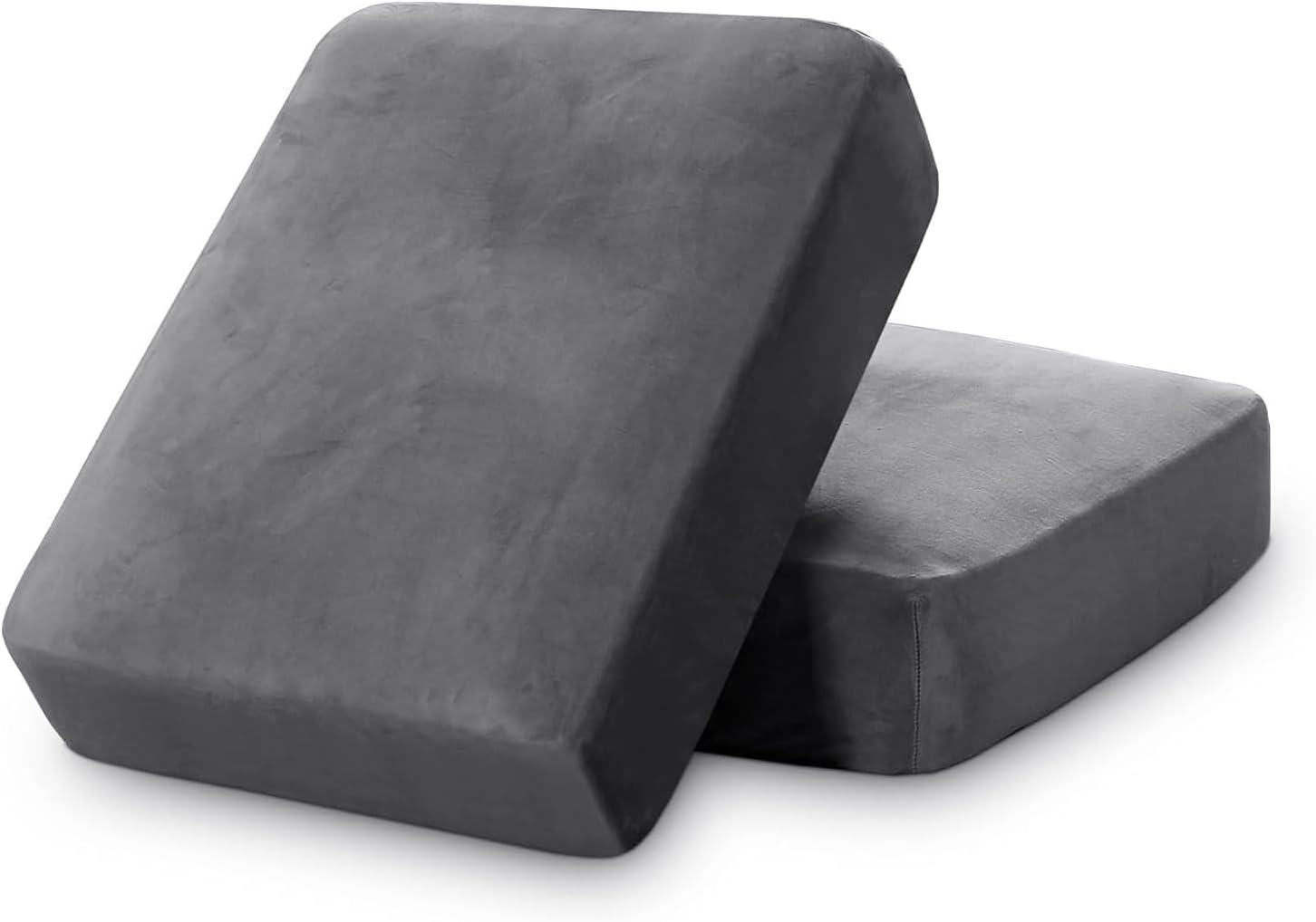PrinceDeco Stretch Velvet Couch Cushion Covers for Individual Cushions Sofa Cushion Cover Seat, Sofa Covers Washable, Couch Seat Cushion Covers for Sectional (2 Pieces, Grey)