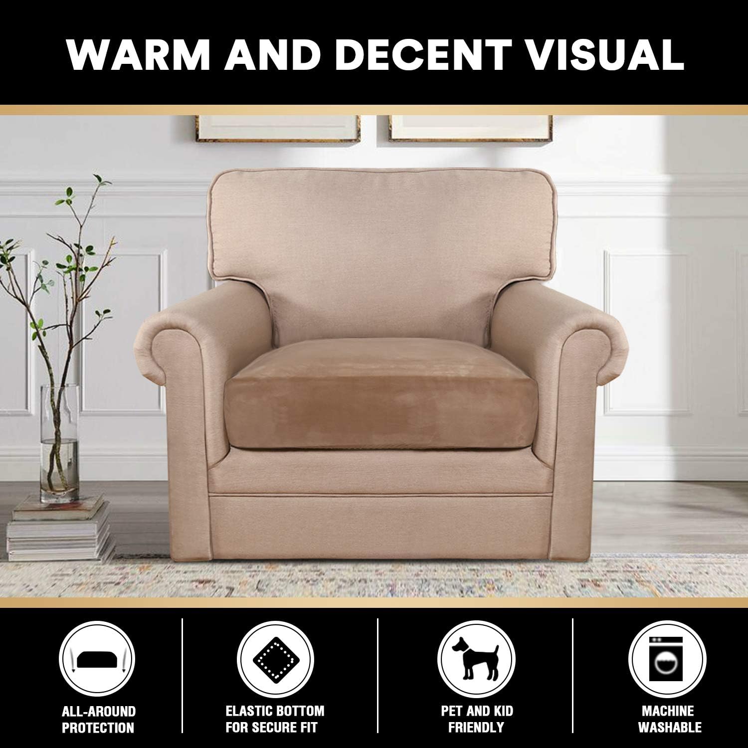 PrinceDeco Stretch Velvet Couch Cushion Cover,Soft Cushion Slipcover for Chair Cushion Furniture Protector Seat Cushion Sofa Cover Width Up to 29.5", Camel