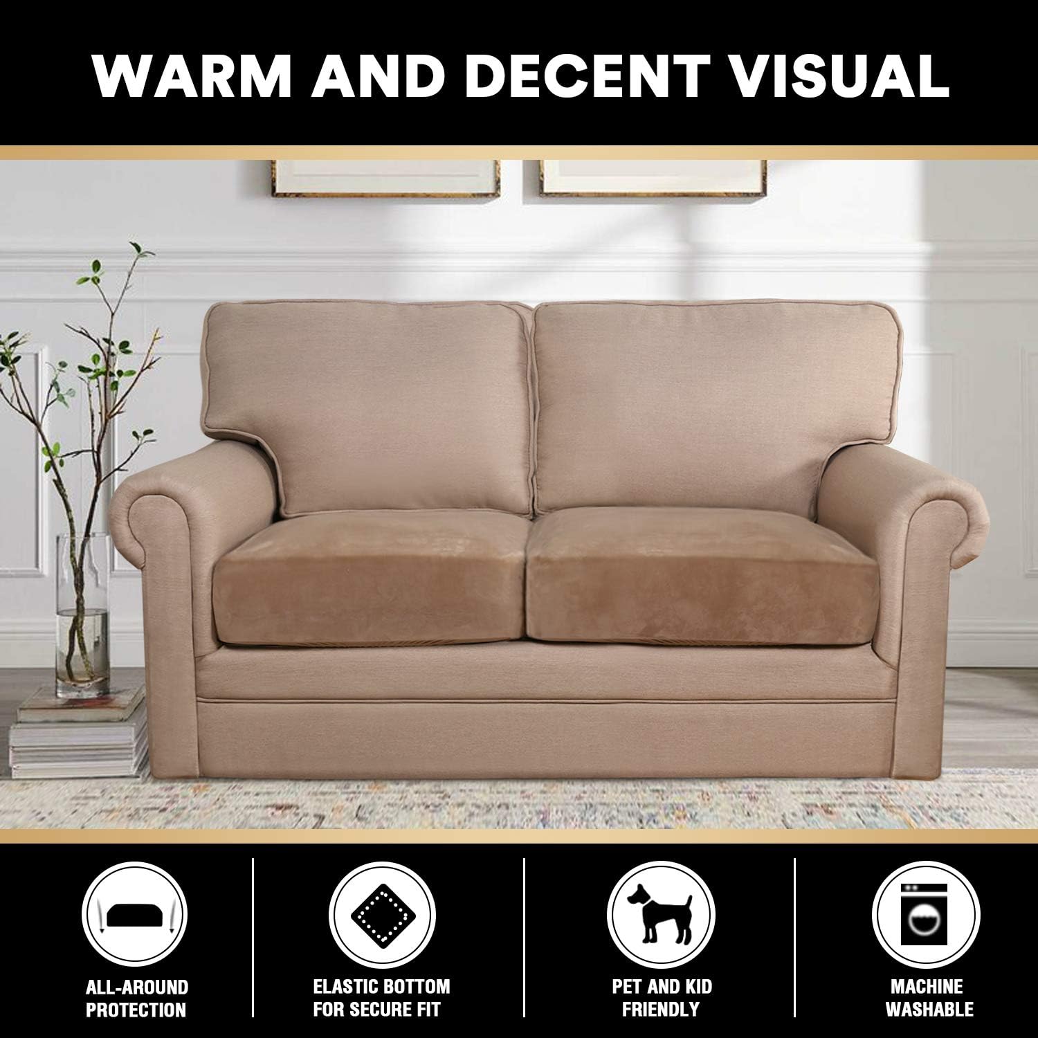 - PET FRIENDLY:Protect your cushion furniture from daily wears and tears, stains, scratches from pet claws, dogs or accidental spills. The antidote to the dust and dirt of everyday living. Perfect for messy kids and pets. Separate seat cushions require no re-tucking.