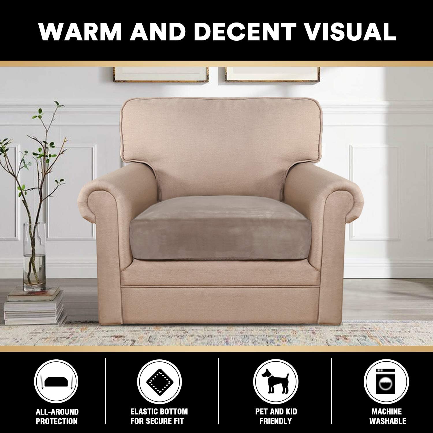 - PET FRIENDLY:Protect your cushion furniture from daily wears and tears, stains, scratches from pet claws, dogs or accidental spills. The antidote to the dust and dirt of everyday living. Perfect for messy kids and pets. Separate seat cushions require no re-tucking.