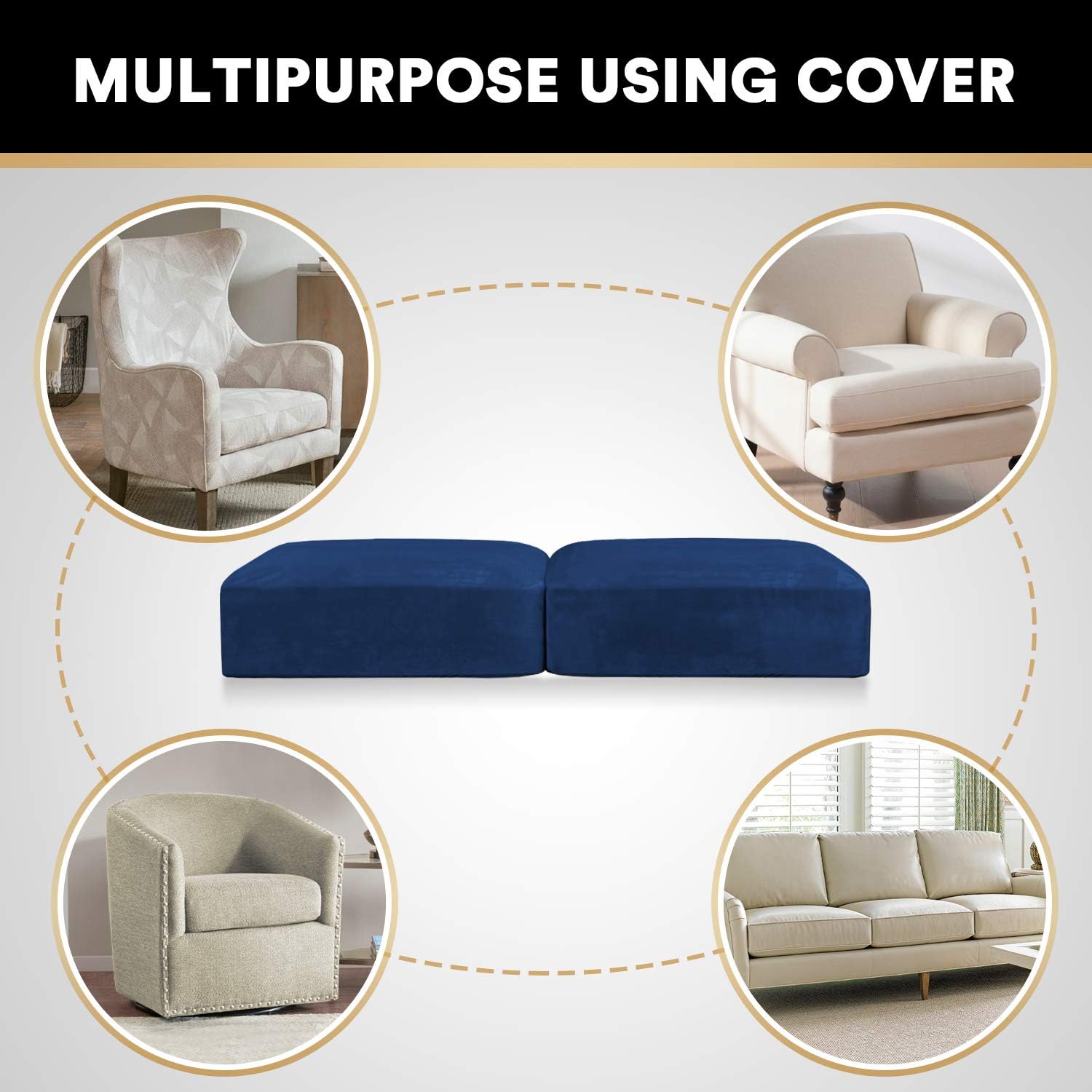 PrinceDeco Velvet Couch Cushion Cover Stretch Cushion Slipcover for Chair Loveseat Sofa Furniture Protector Seat Cushion Sofa Cover (Each Width Up to 29.5", Navy)
