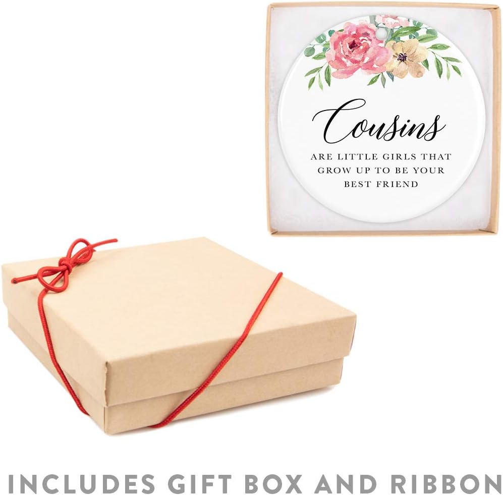 Andaz Press Round Ceramic Porcelain Christmas Tree Ornament Keepsake Gift for Cousins, Cousins are Little Girls That Grow Up to Be Best Friends, 1-Pack