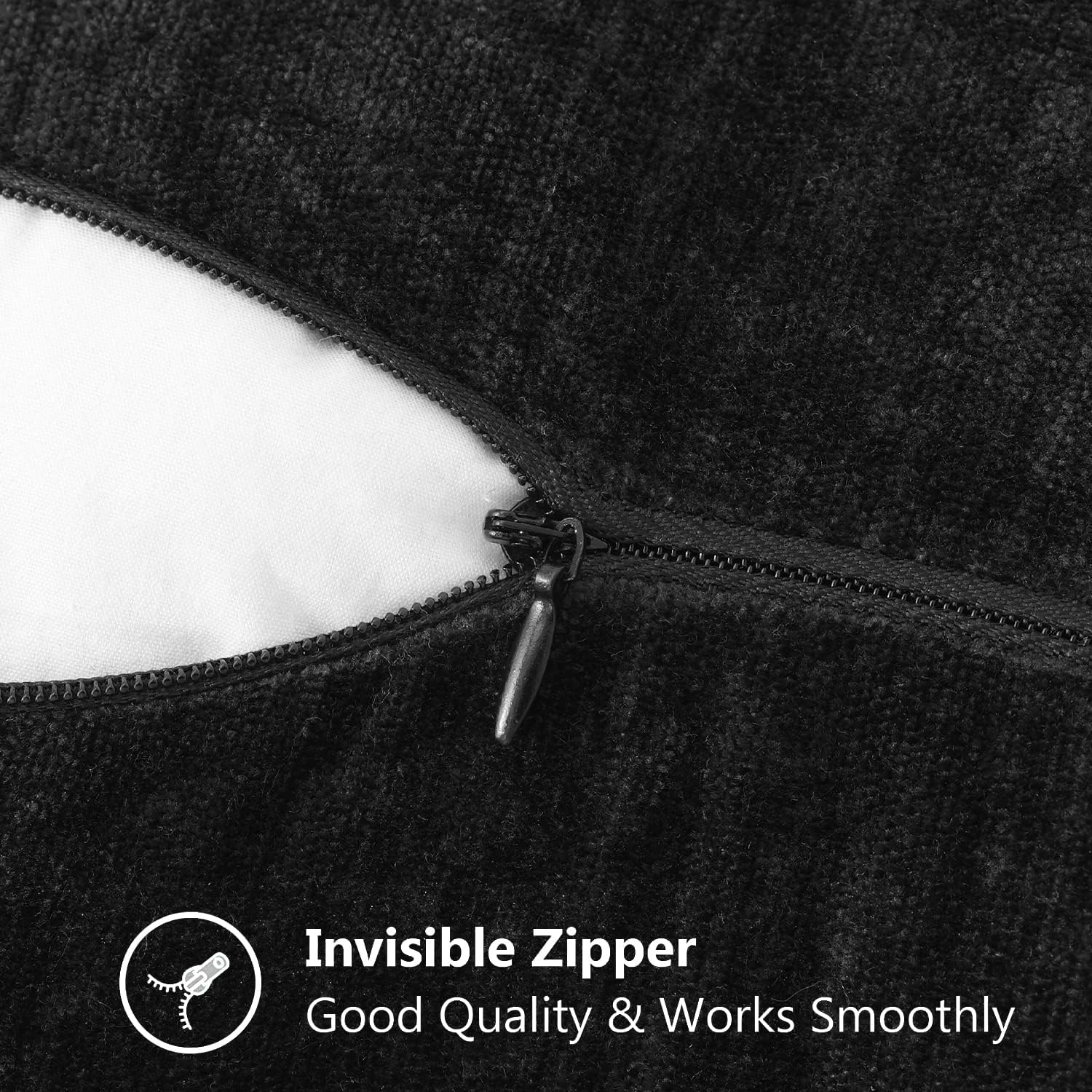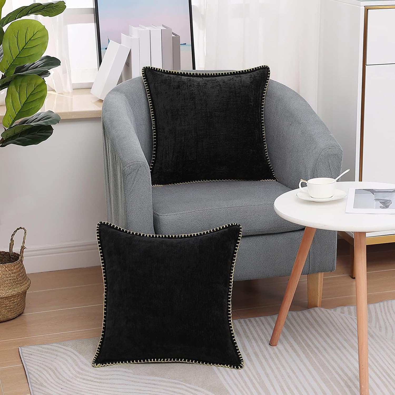 decorUhome Chenille Soft Throw Pillow Covers 18x18 Set of 2, Farmhouse Velvet Neutral Decorative Euro Pillow Covers with Stitched Edge for Couch Sofa Bed Home Decor, Black