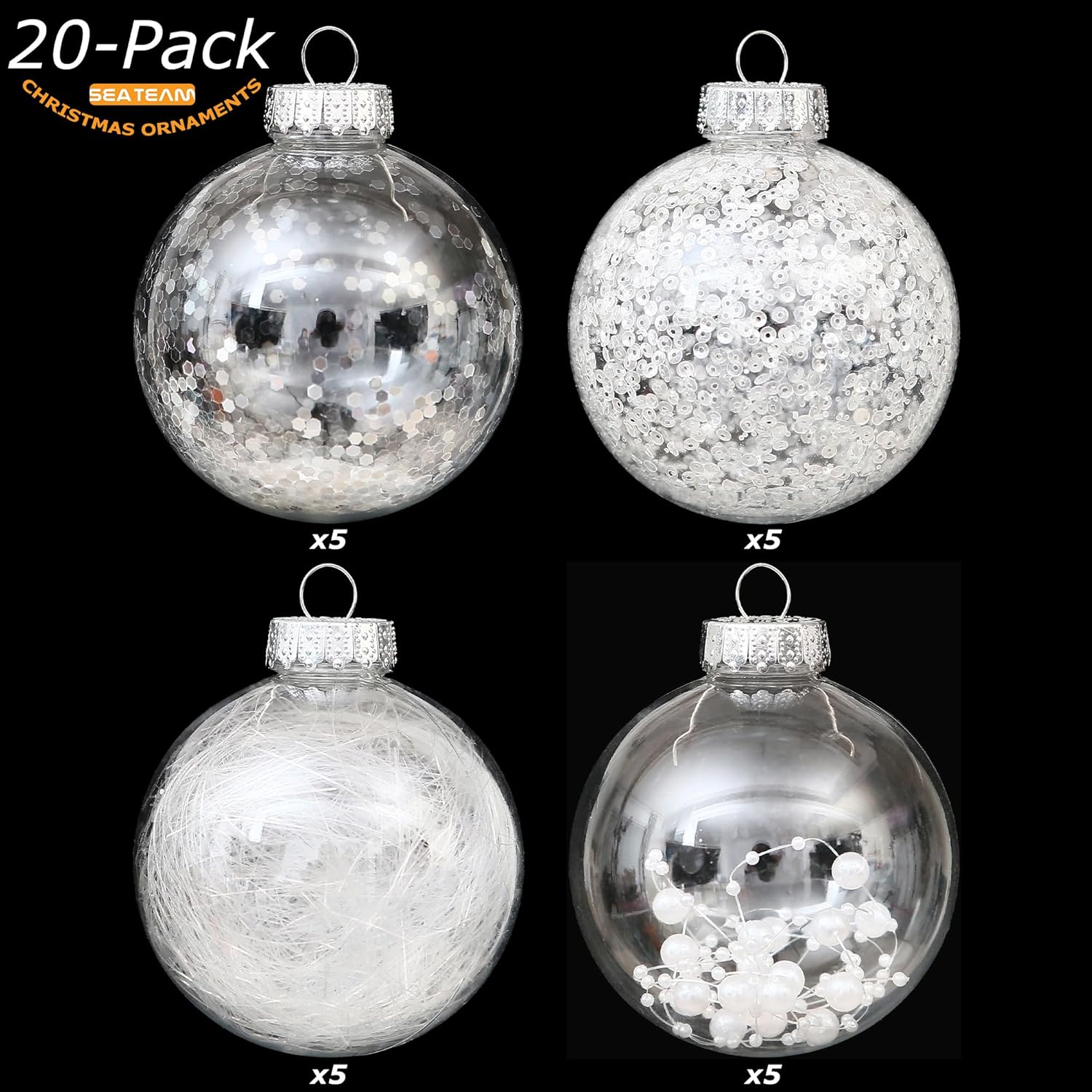 - TRANSPARENT & SPARKLING - These Christmas ball ornaments feature clear glaze base with sparkling decorations like glitter, sequins, tinsel and beads to provide a stunning shimmering look in the light. They will be perfect for decorating your home and become part of your holiday tradition