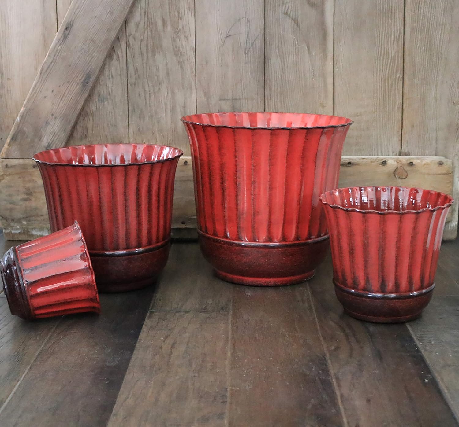 - -STYLE – From the Gateway Collection, the Revere Classic premium Ironstone spun planters have a vertical strip pattern that begins from their bottom rimmed design. These high-gloss planters are available in 4 sizes.