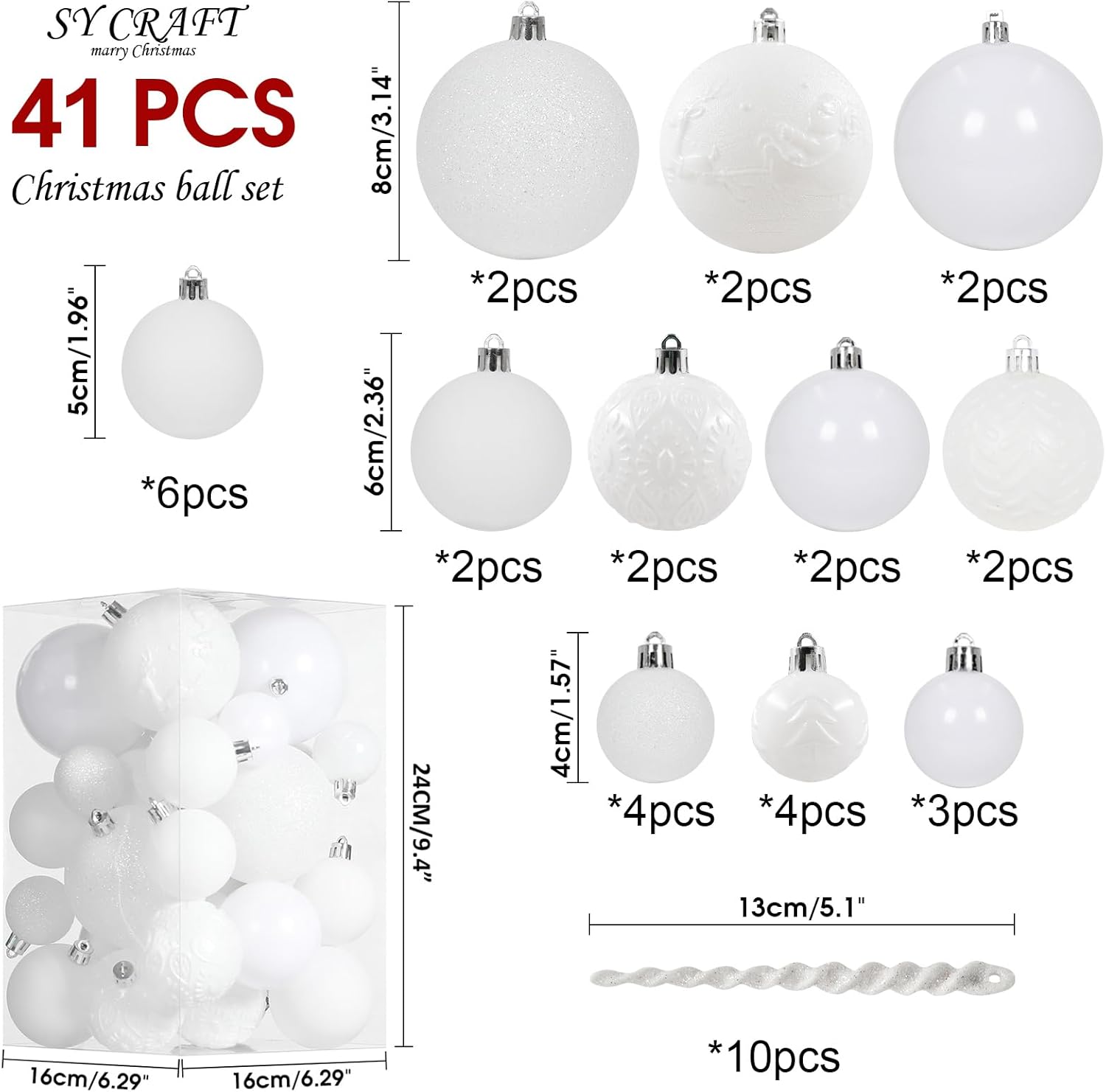 Christmas Ball Ornaments for Christmas Decorations - 41 Pieces Xmas Tree White Shatterproof Ball Ornaments with Hanging Loop for Holiday and Party Decoration