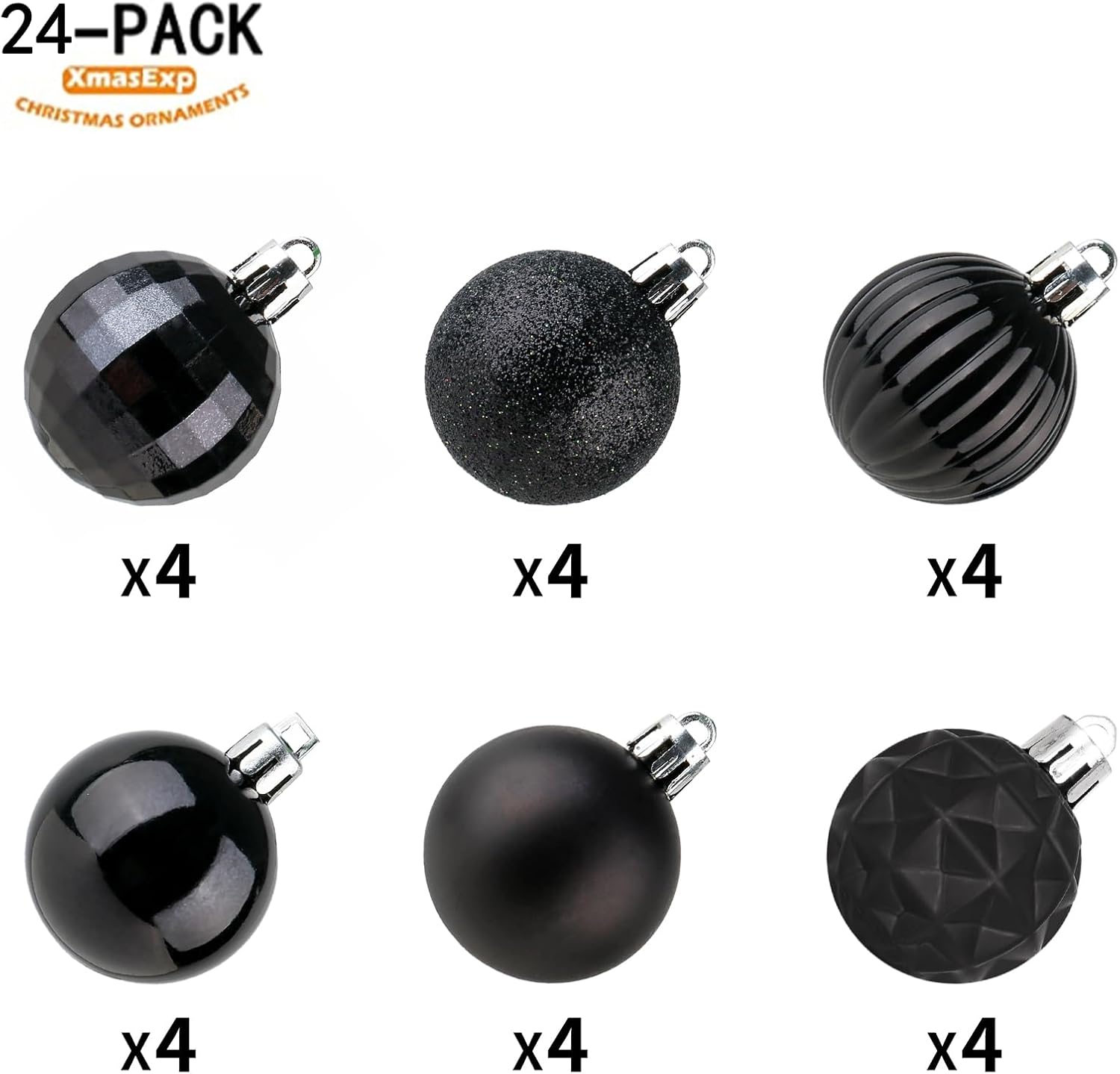 XmasExp 24ct Christmas Ball Ornaments Shatterproof Xmas Tree Hanging Balls Decorations Perfect for Halloween Decorations Holiday Wedding Christmas Decor(1.57", Black)
