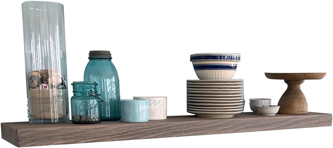 joelsantiques 54 Inch Wooden Floating Shelves for Wall - 54x6x2 in - Made of Natural Wood - Long Heavy Duty Rustic Wall Shelves for Bedroom - Perfect for Living Room, Kitchen - Gray - Grey
