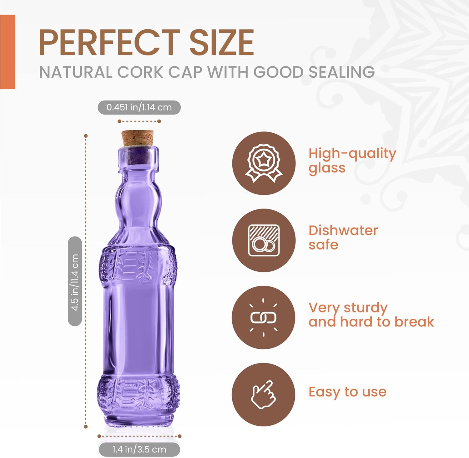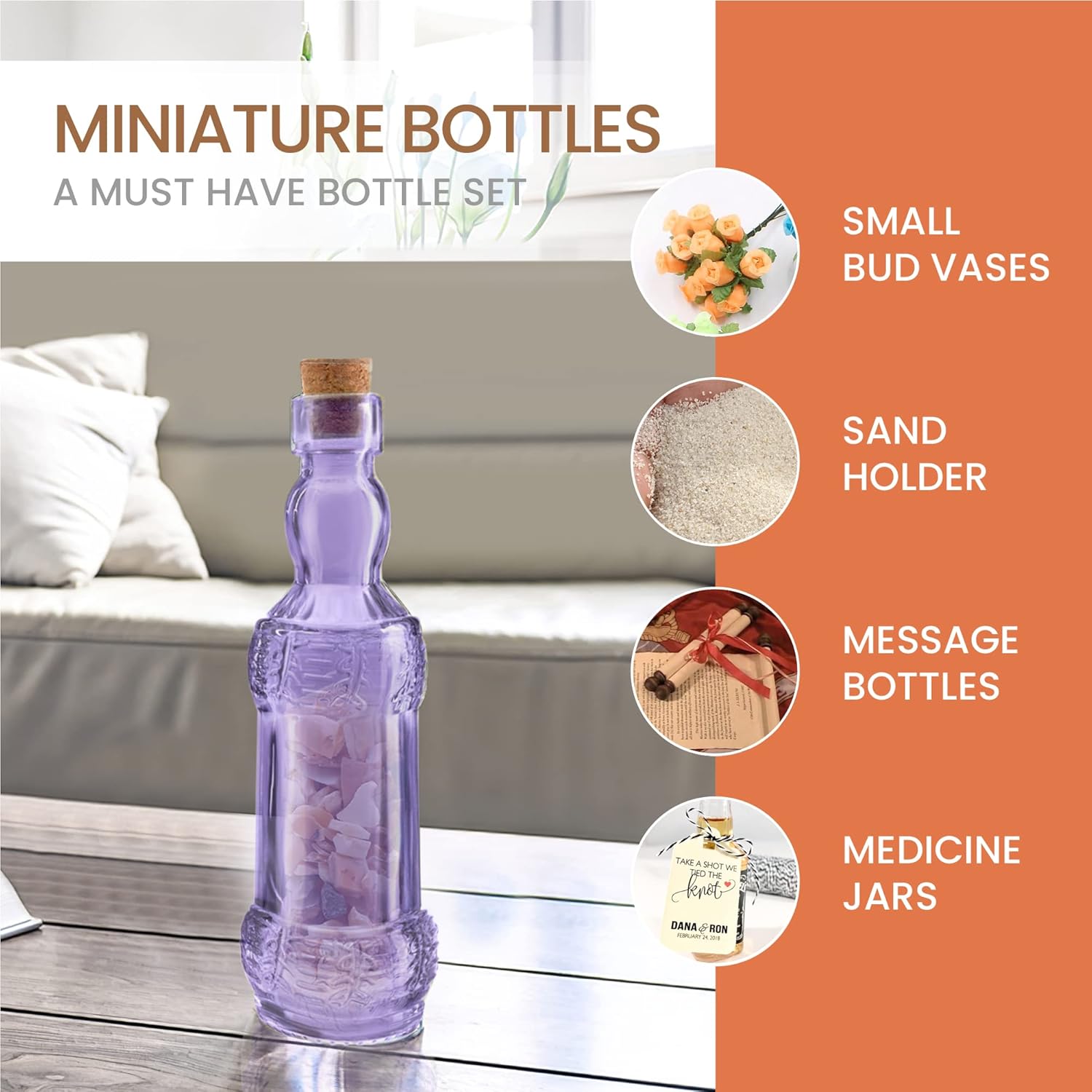 Small Mini Purple Vintage Glass Bottles with Corks, Mini Vases, Decorative Glass Bottle, Potion Bottles, Assorted Design Set of 12 pcs, 4.6 Inch Tall (11.43cm), 1.4 Inch Wide (3.56cm)