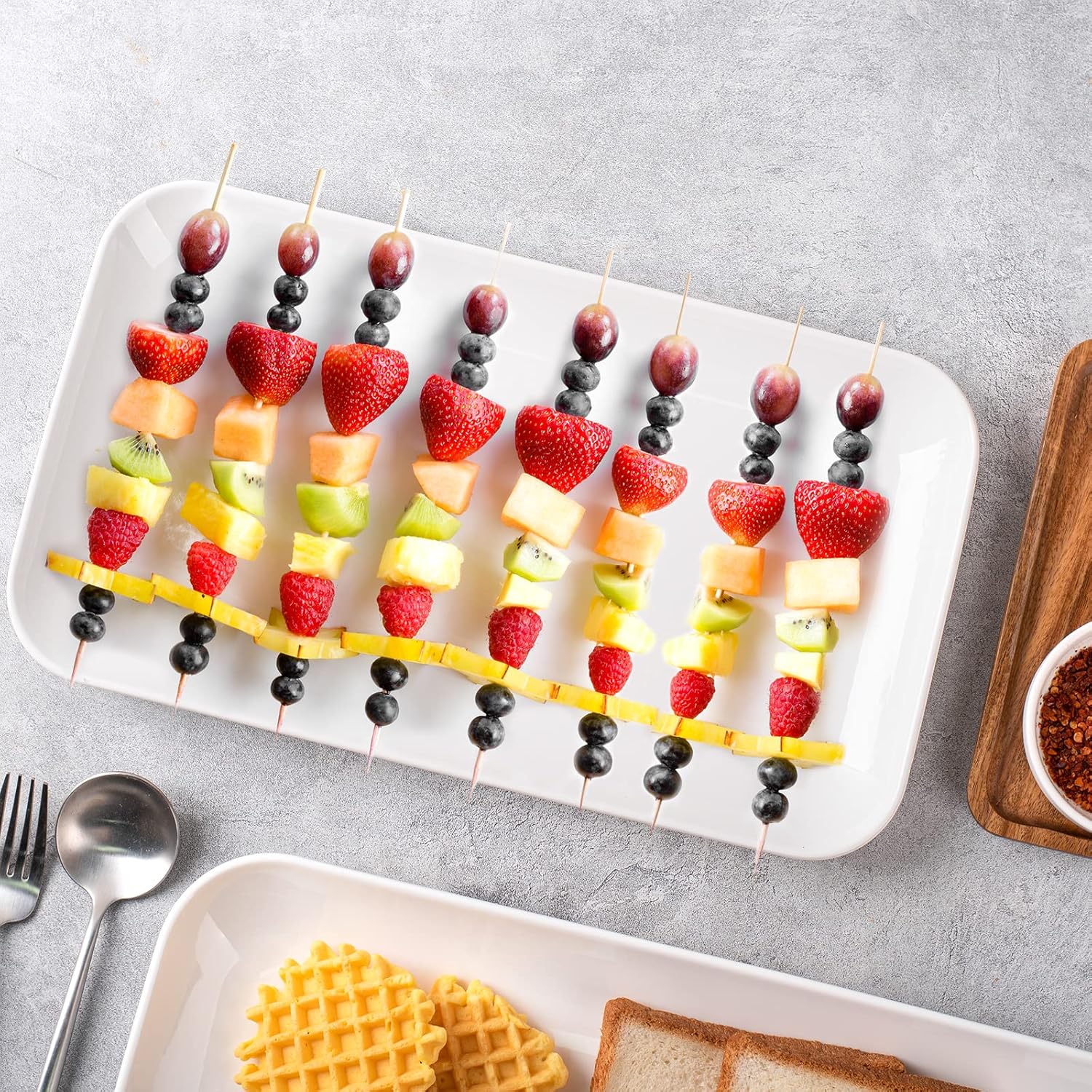 DELLING Large Serving Platter Set 12in White Rectangular Serving Plates/Salad Dish - Big Serving Trays for Parties Meat, Sushi, Dinner Plate Oven Safe Dinnerware Set of 3