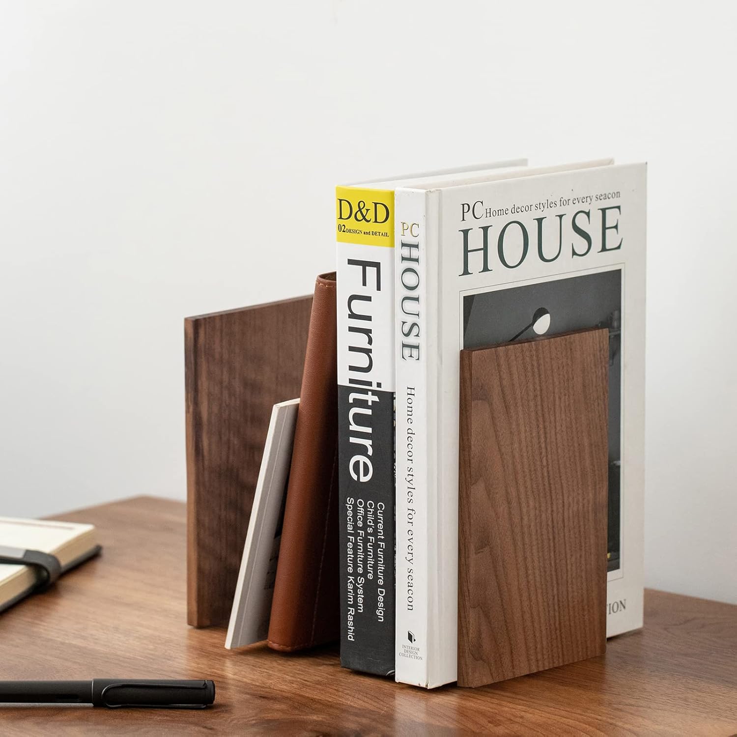 - [BOOKENDS SUPPORT] Made of premium American walnut wood, heavy sturdy metal on the bottom. Thick material and add the breath of nature for your desk.