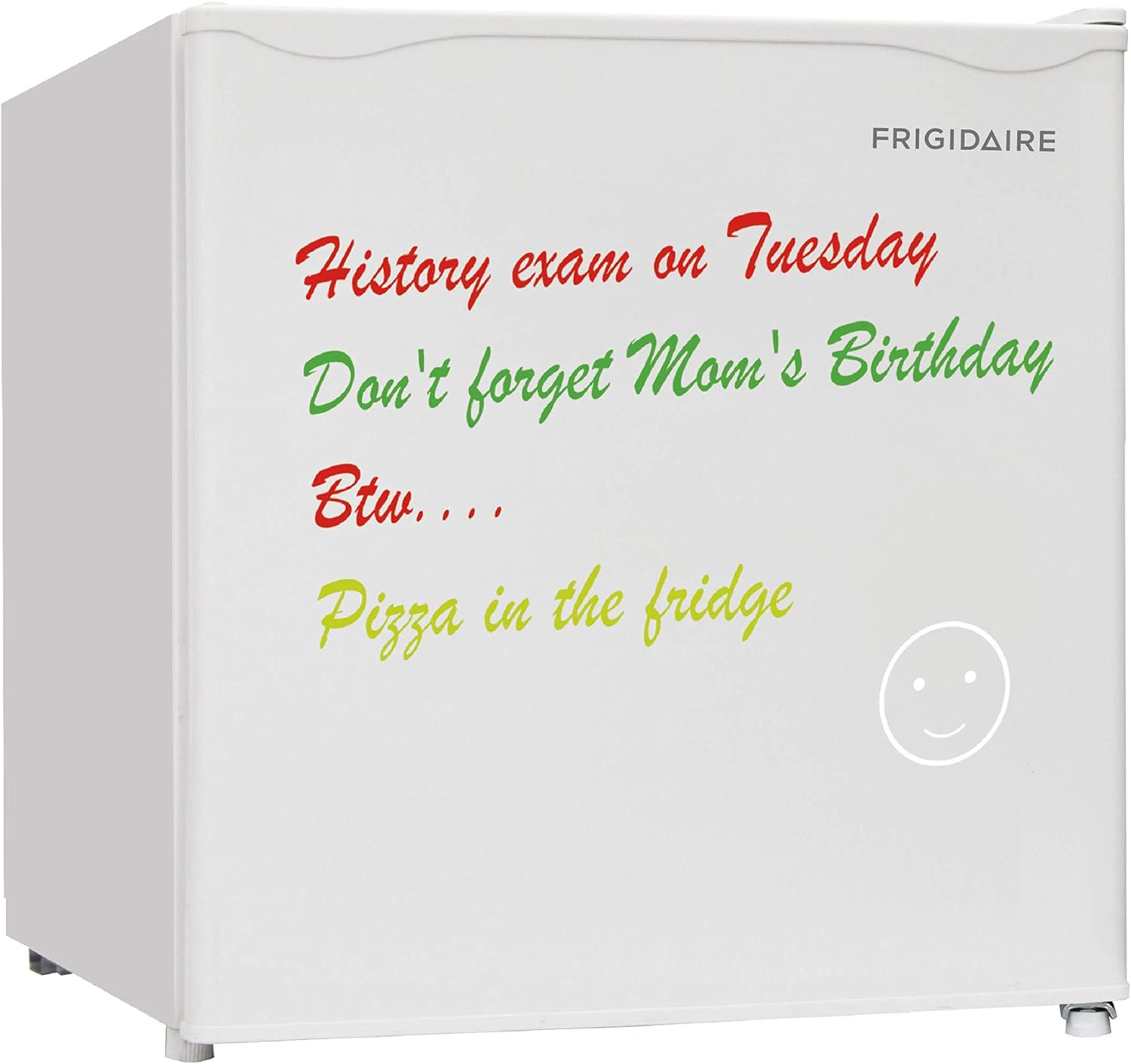 FRIGIDAIRE EFR107-WHITE, Mini Fridge for Dorm with White Board & Small Ice Freezer 1.6 Cu Ft Compact Refrigerator, White