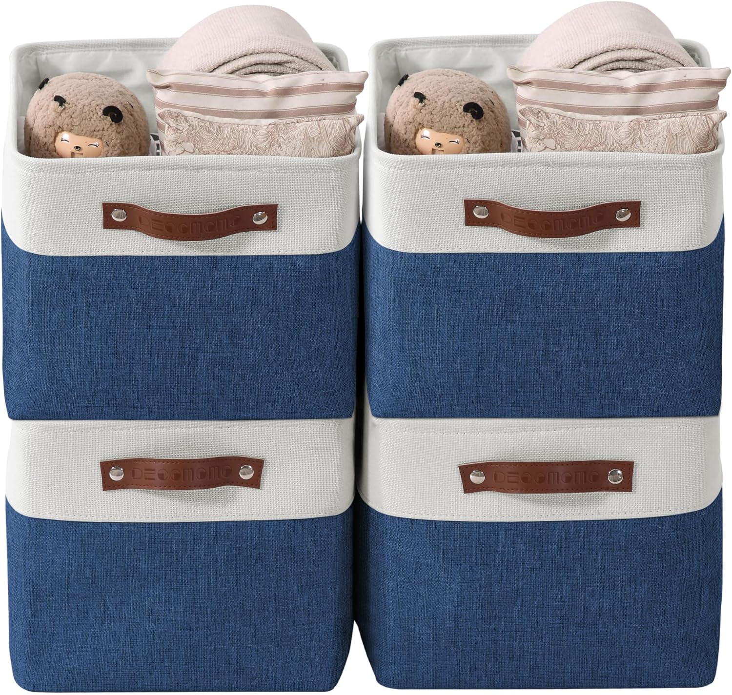DECOMOMO Storage Bins Fabric Storage Baskets for Shelves, Linen Closet Organization Toys Nursery (Navy Blue and White, Large - 4 Pack)