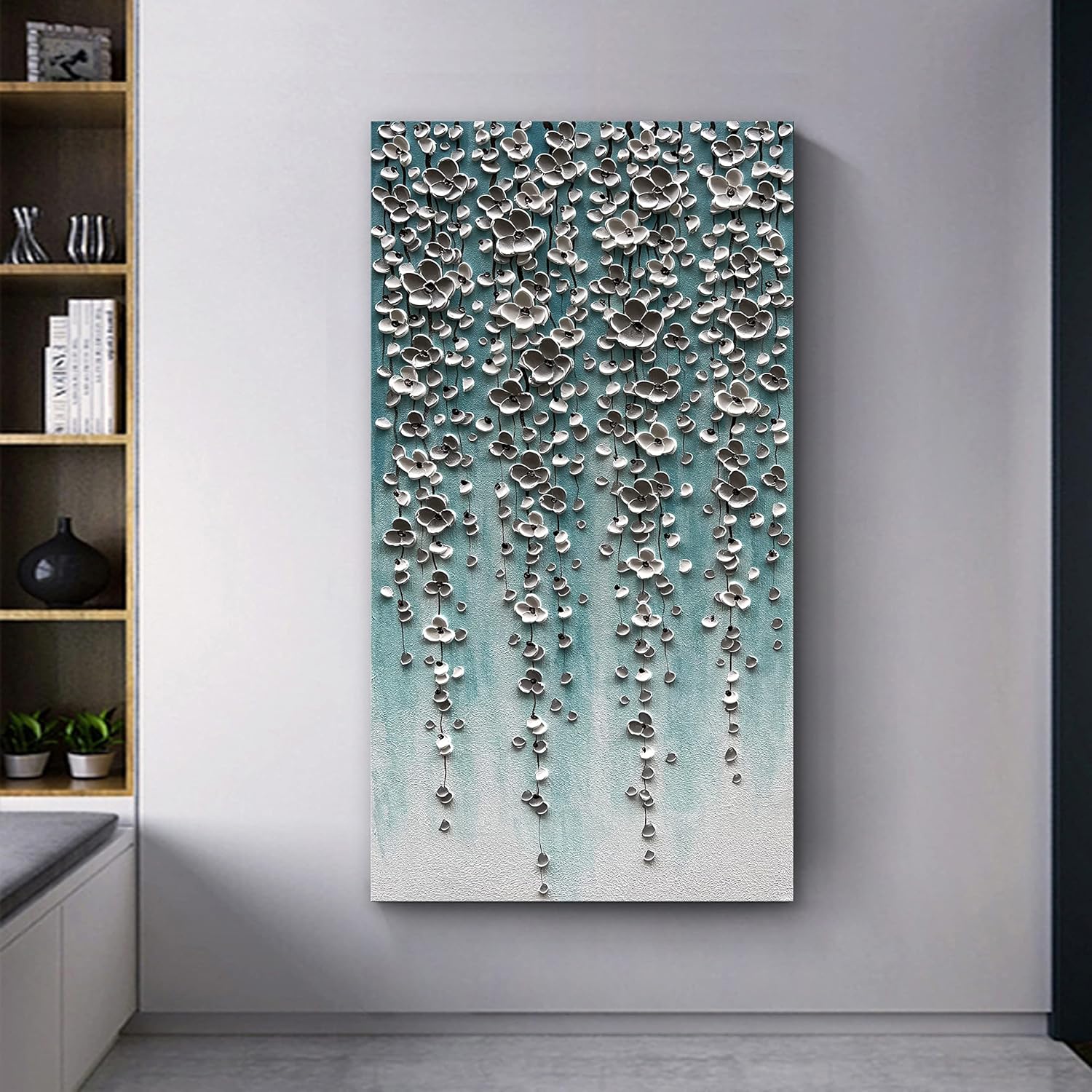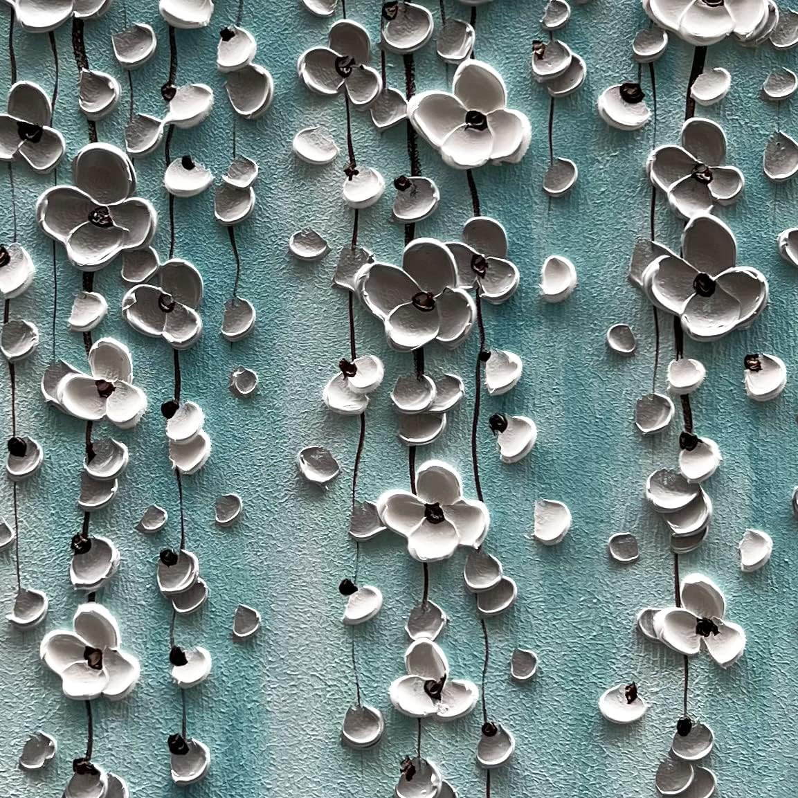 Epicler Large-Scale Oil Painting on Canvas Wall Art,46x23 inches Hand-Painted White Flower Wall Painting, Abstract Canvas Wall Art for Home Wall Decoration
