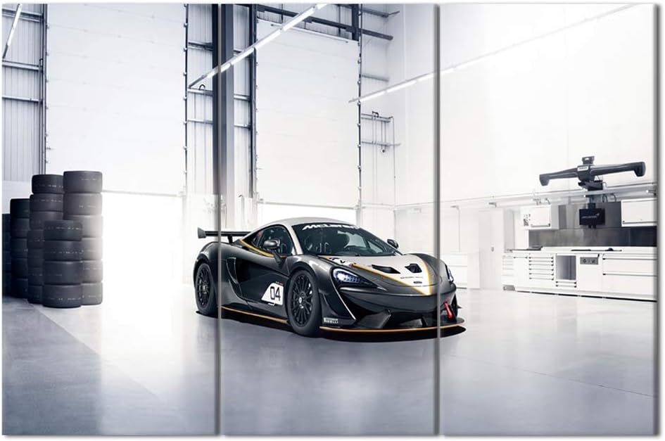 TUMOVO Framed Wall Art Picture 3 Pieces Black and White Sports Car Giclee Canvas Print Paintings for Living Room Ready to Hang Home Decor - 40 x 20inch x 3 Panels