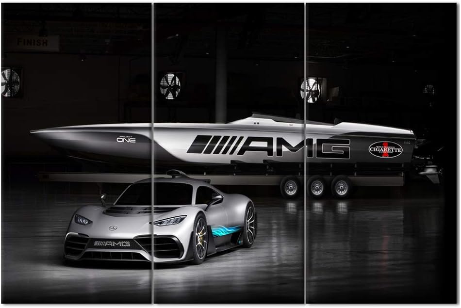 TUMOVO 3 Pieces Car Pictures Wall Art Framed Sports Car in Cool Gray Style Poster Canvas Print Vintage Western Decor for Home Office Living Room Man Bedroom - 40 x 20inch x 3 Panels
