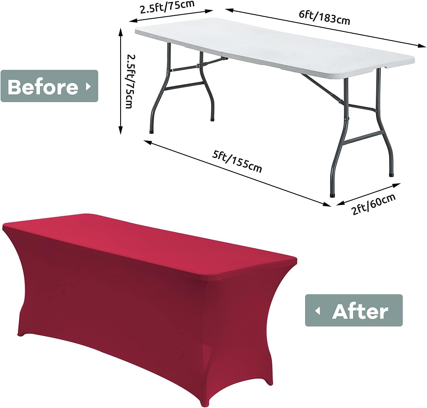 - [Dimensions]:The 6 foot tablecloth fits tables that are 72" Length X 30" Width X 30" Height; It is always fitted and tight for Standard Folding Tables-Universal Rectangular Fitted Tablecloth Protector