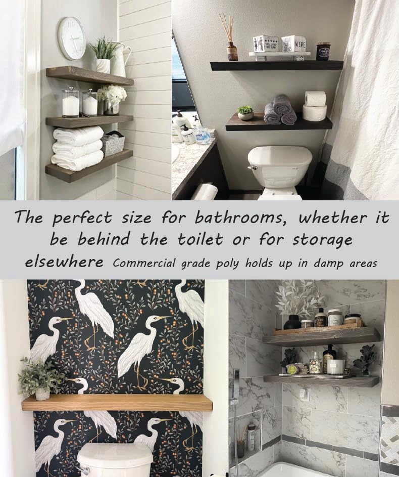 - Elevate Your Space with Rustic Charm: Transform your living room or any space with our large floating shelves for wall. These 30 inch floating shelf beauties, crafted from natural wood, add a touch of rustic warmth and provide ample display space for your cherished items. This size is perfect for behind the toilet and bathroom organization.