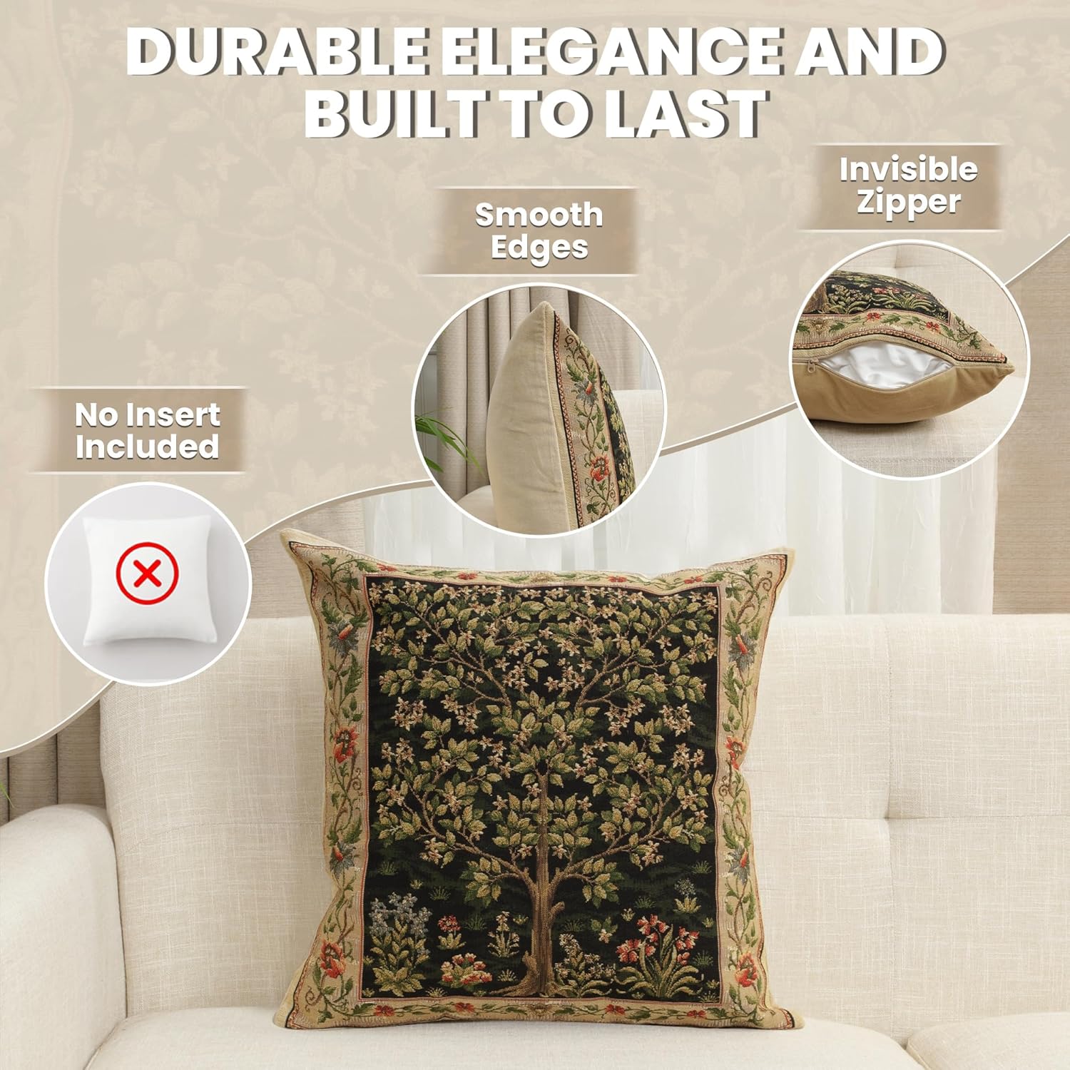 Charlotte Home Furnishings Throw Pillow Covers, Decorative Boho Pillow Covers for Couch, Living Room, Black Tree Square Cushion Cases 18x18 in, European Cotton Jacquard Woven for Cozy Bedroom Decor