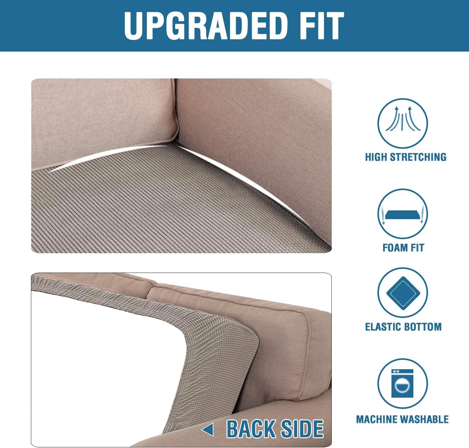 H.VERSAILTEX Super Stretch Individual Seat Sofa Covers Couch Slipcover Sets Thick Jacquard Textured Twill Fabric (2 Piece Large Sofa Cushion Covers, Taupe)