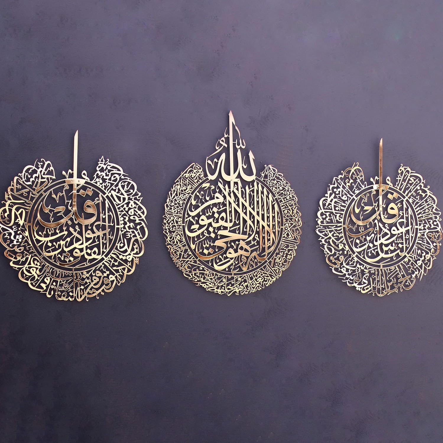 IWA CONCEPT Metal Set of Ayatul Kursi, Surah Al Falaq and Surah An Nas | Islamic Ramadan Wall Decorations | Modern Muslim Housewarming Gift | Arabic Calligraphy | Quran Wall Art | (Shiny Copper,