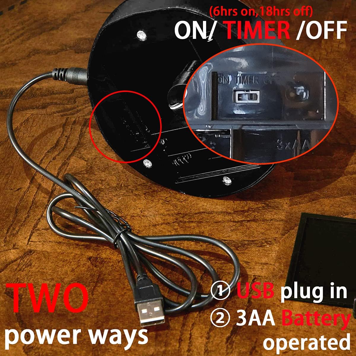 - 🎃【Two-way power】① Works with 3 AA Batteries.(Battery NOT included)② Works with a corded USB charger.(Charger NOT included), it works with 4.5V or 5V charger plug.