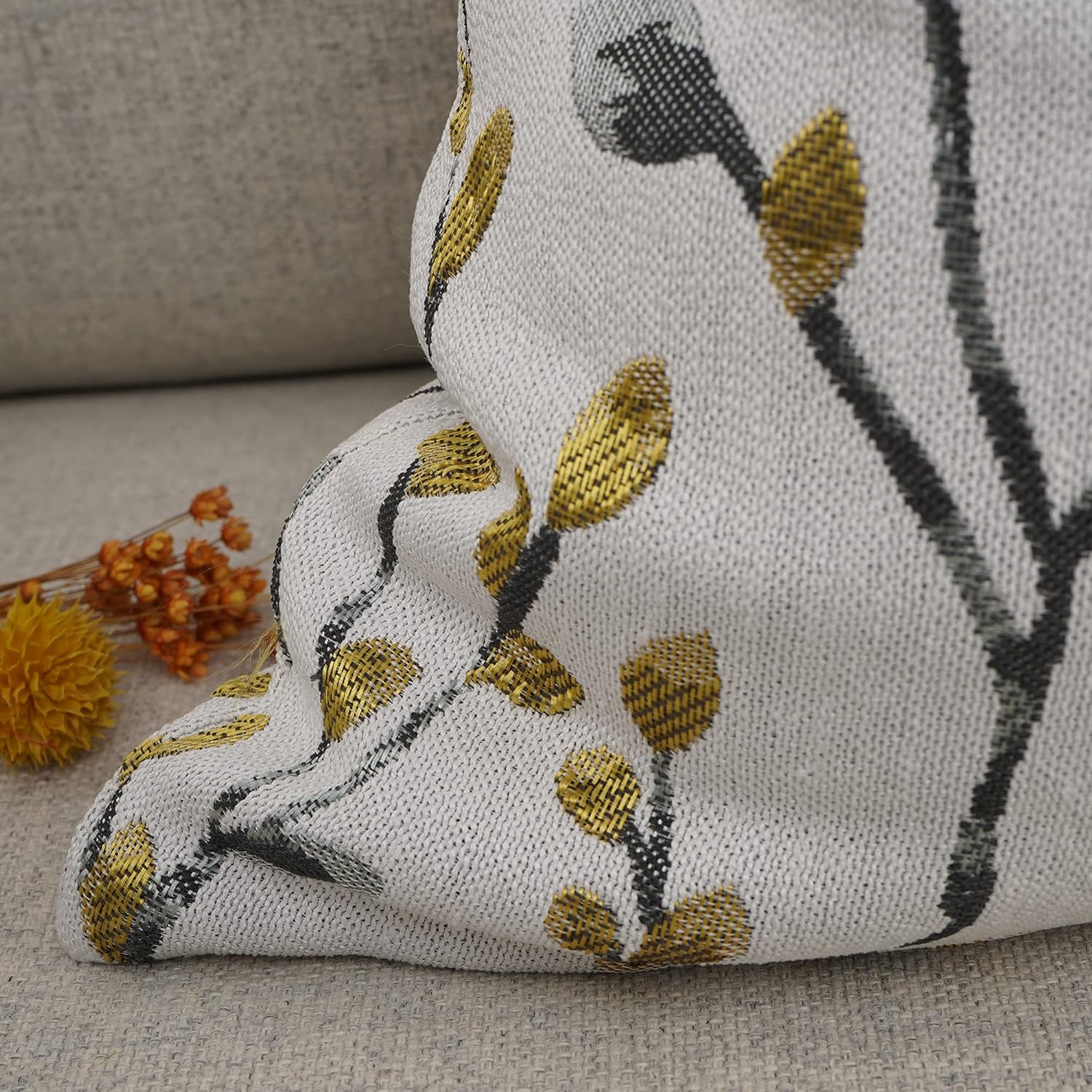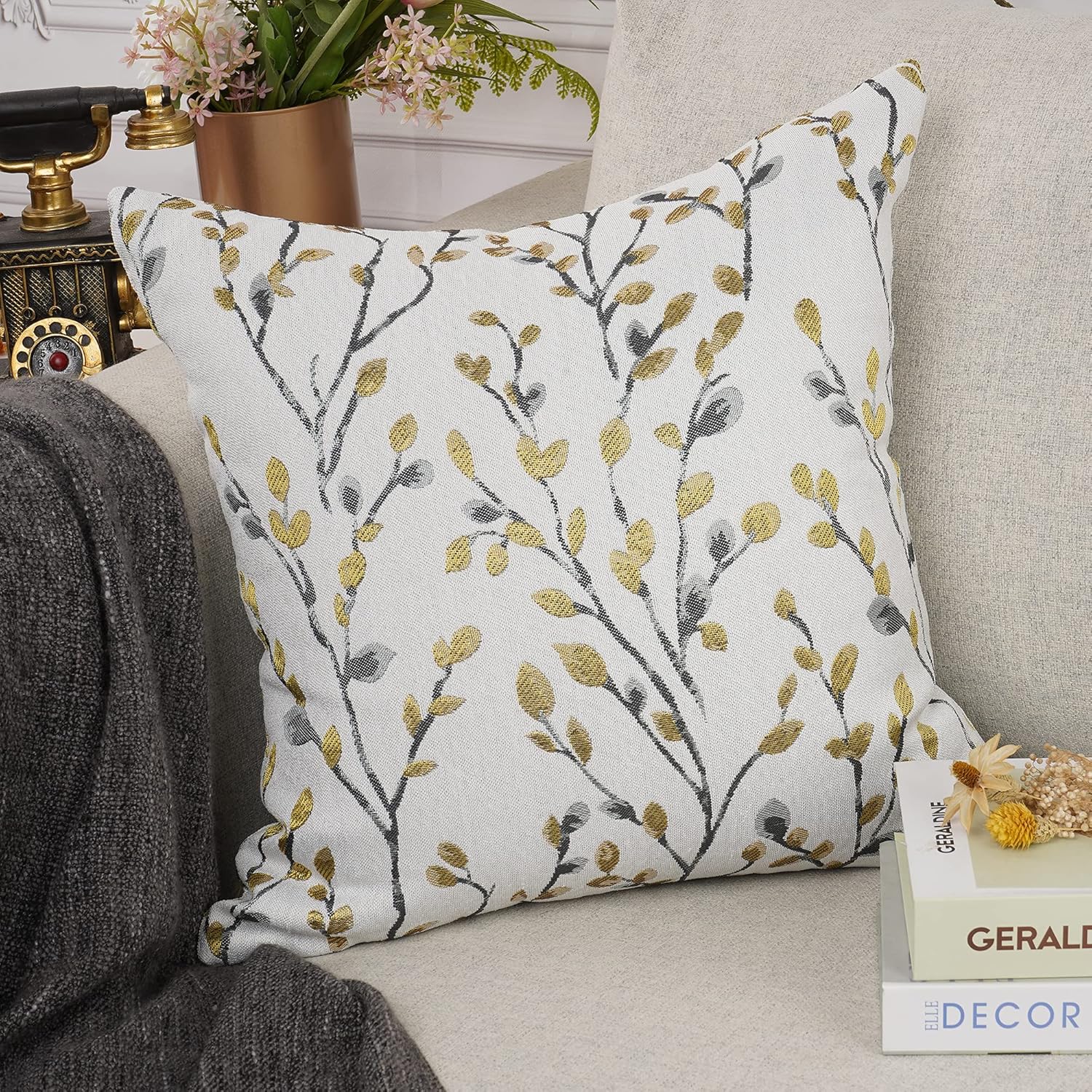 YOUR SMILE Classical Embroidery Jacquard Yellow/Gold Square Decorative Throw Pillow Case Cushion Cover 18x18 inch