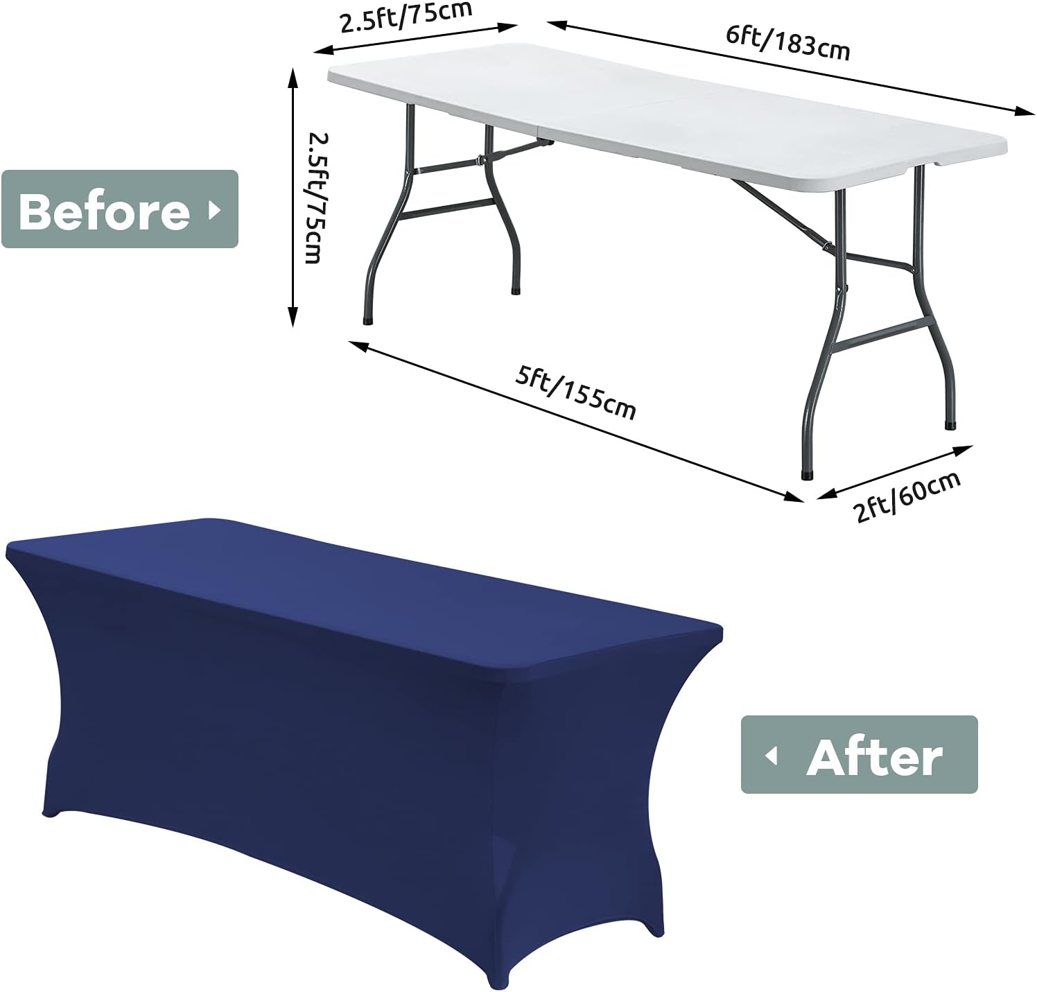- [Easy To Set Up]: Our table cover is easy for you to set up,just wrap around your table, put 4 table legs into Elastic leg pockets,and ensuring that every part of the rectangular table is covered and spandex table cloth cover is displayed uniformly;It can be used for both indoors and outdoors