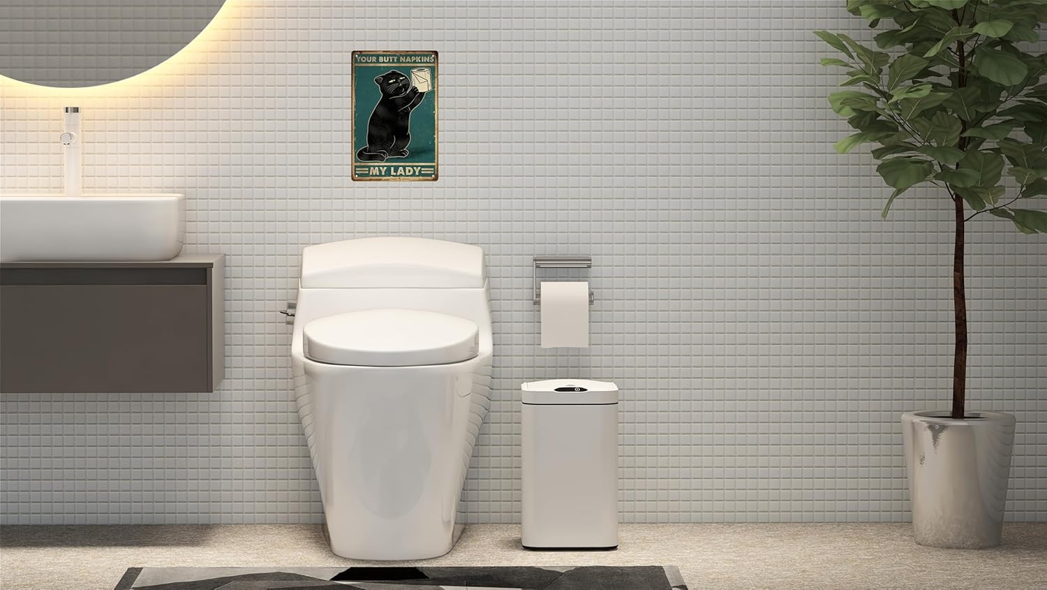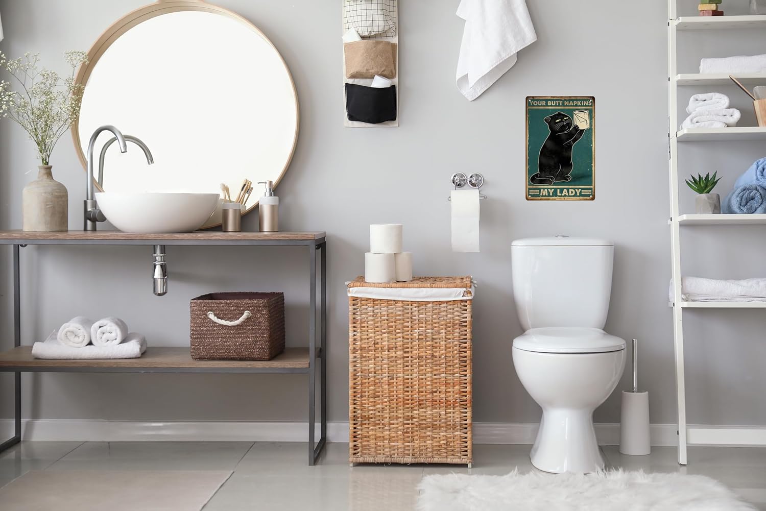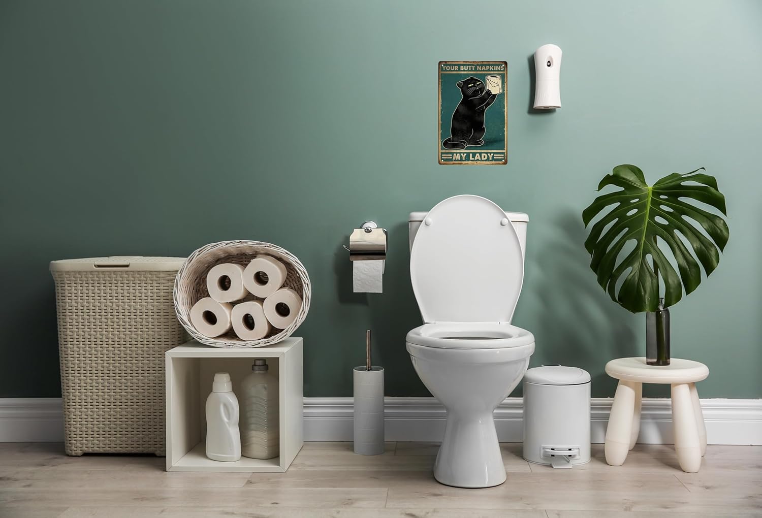 - Bathroom vintage tin sign Black Cat home decorations measure 8x12 inch(20 x 30cm)